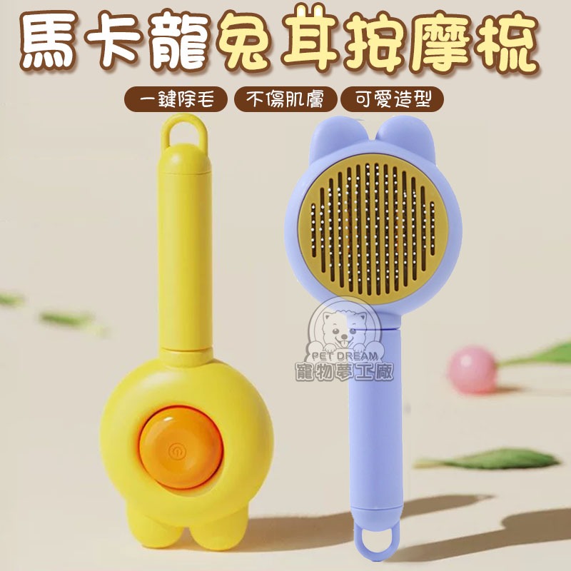 馬卡龍兔耳按摩梳 寵物梳毛 一鍵除毛 寵物梳 圓弧一鍵除毛梳 梳毛刷 開結梳 除毛梳 圓弧按摩梳 除毛寵物針梳 寵物梳子
