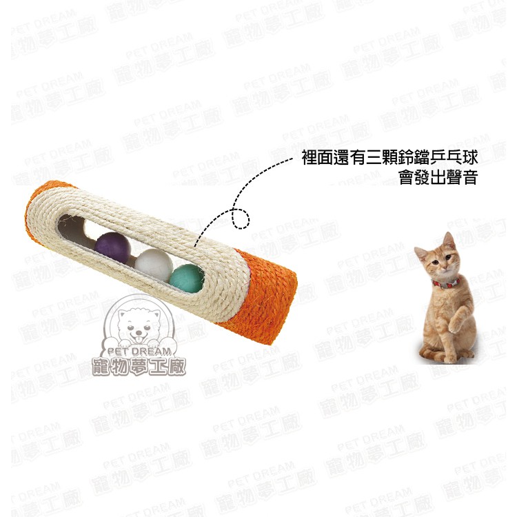 劍麻圓筒 貓抓板 三顆鈴噹乒乓球 貓玩具 貓磨爪 寵物玩具 寵物用品 寵物 貓狗 玩具 貓抓 棉麻