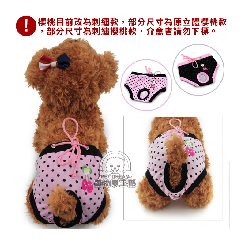 可愛寵物生理褲 黃小鴨 / 藍小鴨 / 紅草莓 / 粉底櫻桃 / 黑底櫻桃 生理褲 狗生理褲