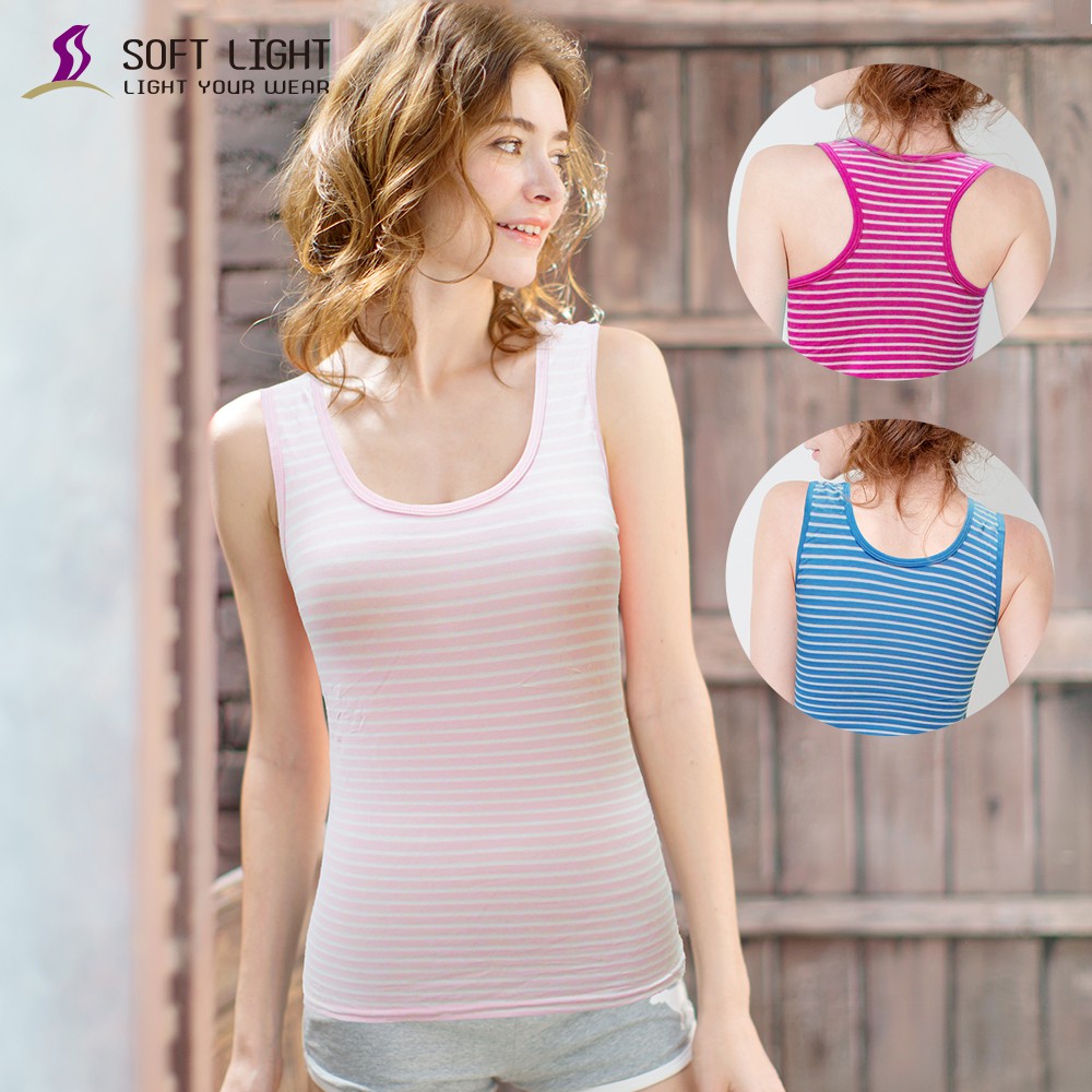 SOFT LIGHT - 輕柔質感橫紋寬肩背心(U背/挖背)