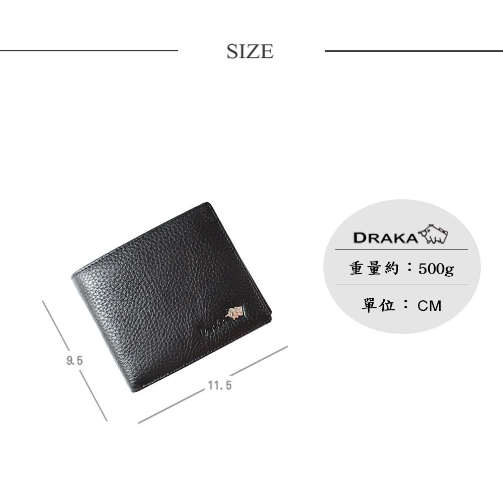 DRAKA 達卡 - 袋著走系列-真皮可掀式短夾/2卡窗格大零錢袋-金屬款