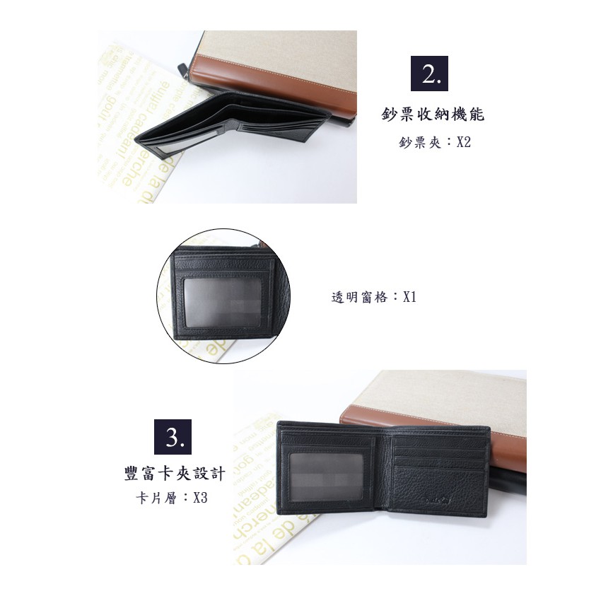 DRAKA 達卡 - 法國文藝系列-真皮可掀式短夾/3卡窗格