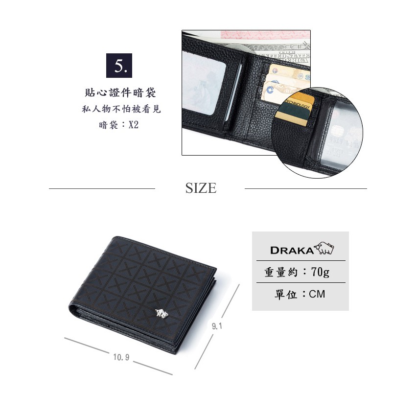 DRAKA 達卡 - 極品布雅德幾何系列 -6卡2窗格真皮短夾-3413