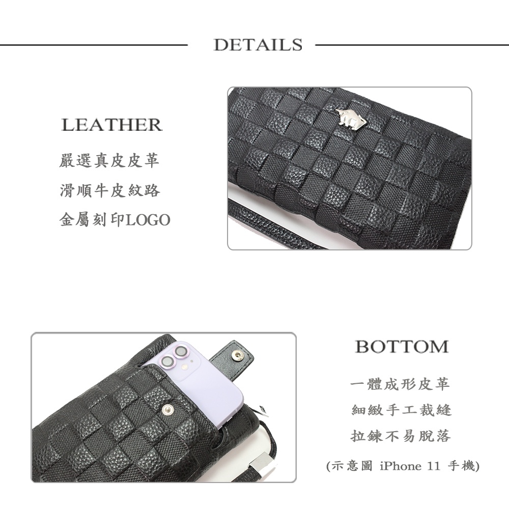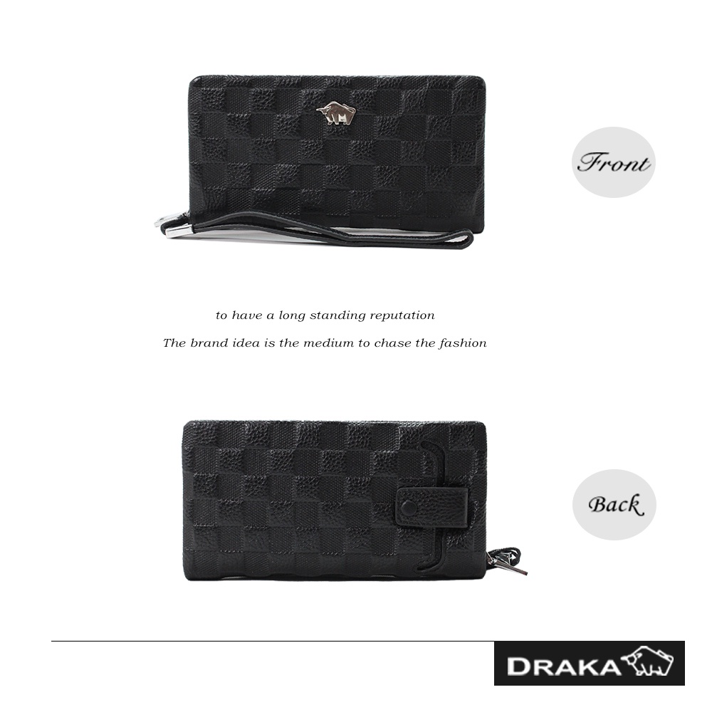 DRAKA 達卡 - 極致手感系列-真皮雙層增厚手機手腕包/8卡 零錢袋-棋盤格