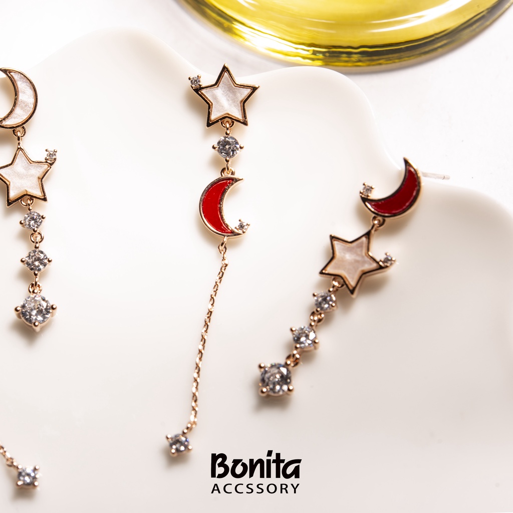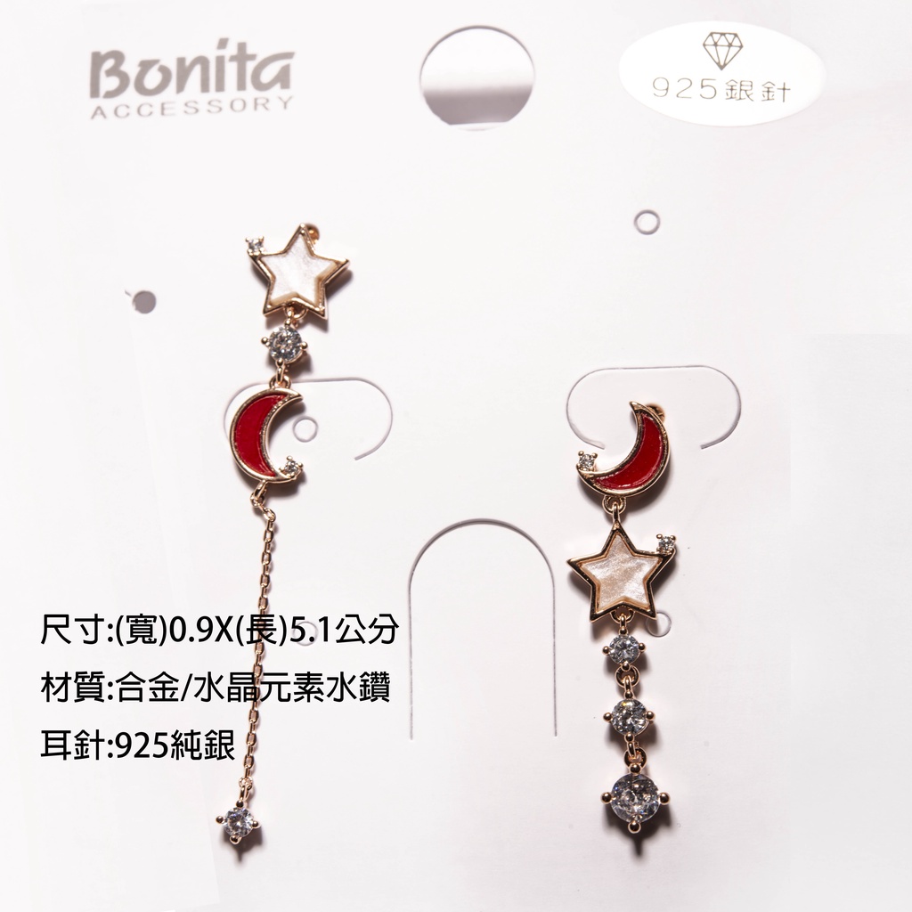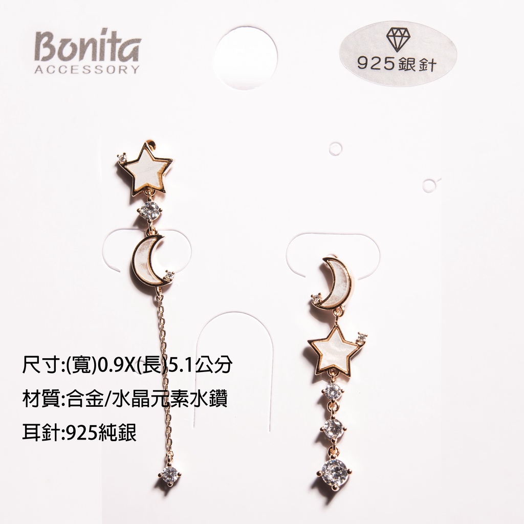 【Bonita】925銀針/星月不對稱耳針耳環700-9283