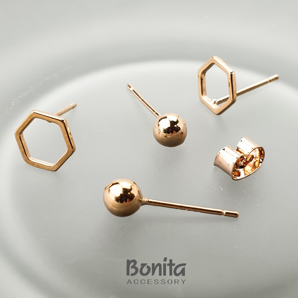 Bonita【925銀針】菱角水玉貼耳式銀針耳環(多件式組合)--700-9007
