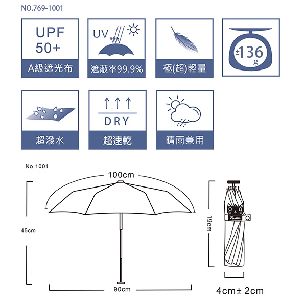 【Bonita】小花(極輕量)口袋傘-(769-1001)UV遮蔽率99.9UP/UPF50+A級遮光布/ 遮蔽黑膠