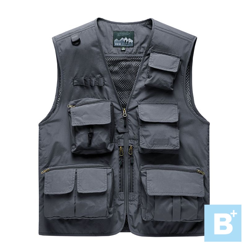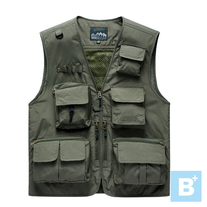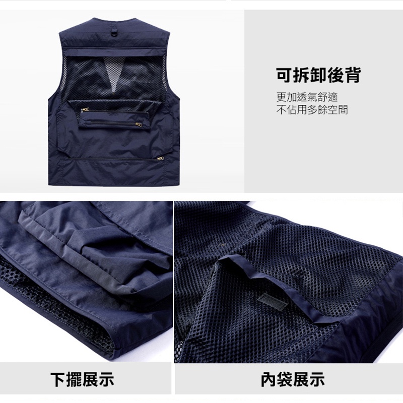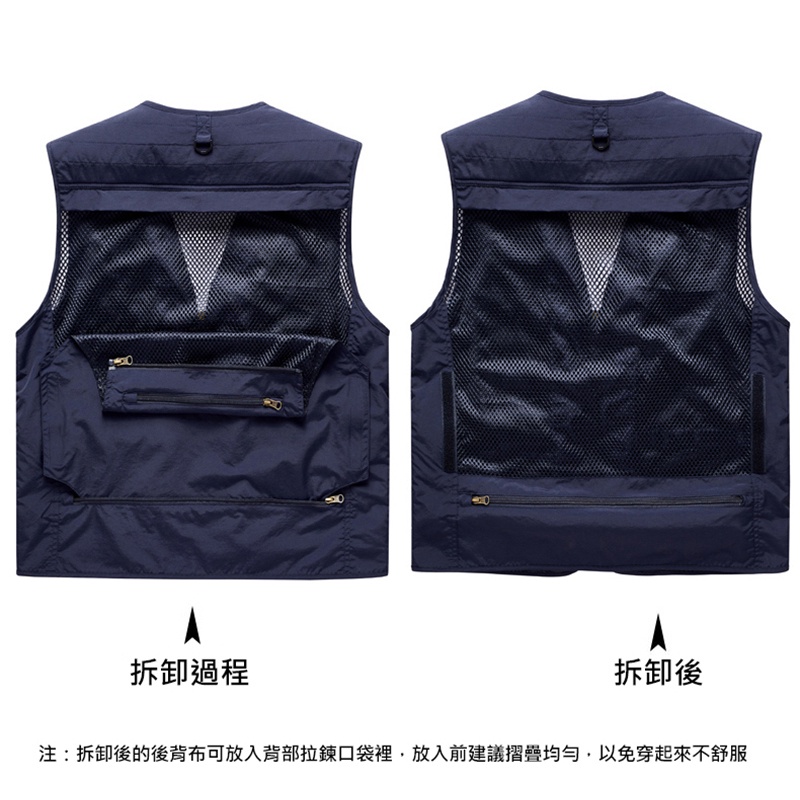 大尺碼-男款-防水 速乾 戶外 旅遊 攝影 釣魚 多口袋背心-卡其/綠/黑/深灰/深藍-0207005
