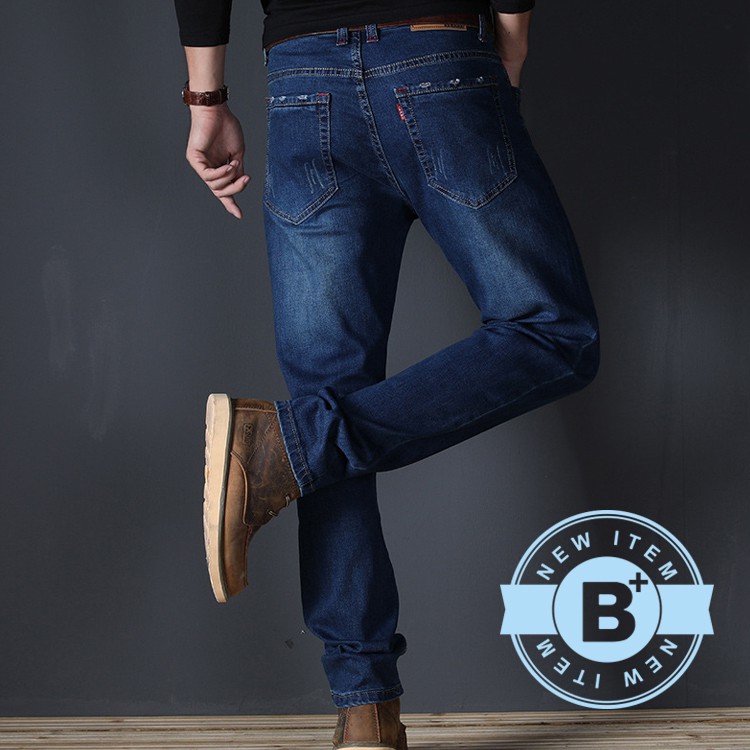 《B+大尺碼專家》 直筒牛仔長褲-深藍/淺藍-0203004