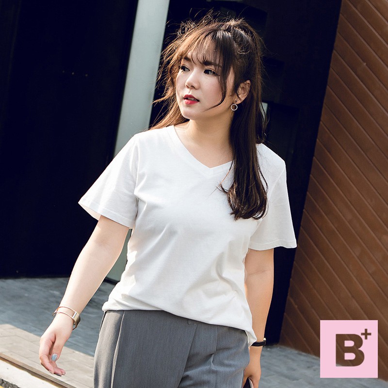 【B+大尺碼專家】舒服全棉T恤-黑/淺綠/白/粉/玫紅/橄欖綠-0101269