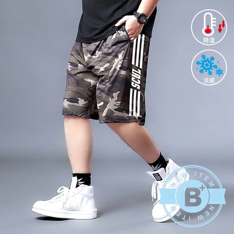 《B+大尺碼專家》鬆緊褲頭 冰絲彈性迷彩短褲-綠-0205523
