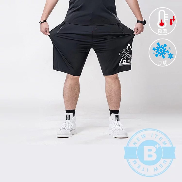 【B+大尺碼專家】冰絲排汗彈性短褲-鬆緊褲頭-黑-0205519