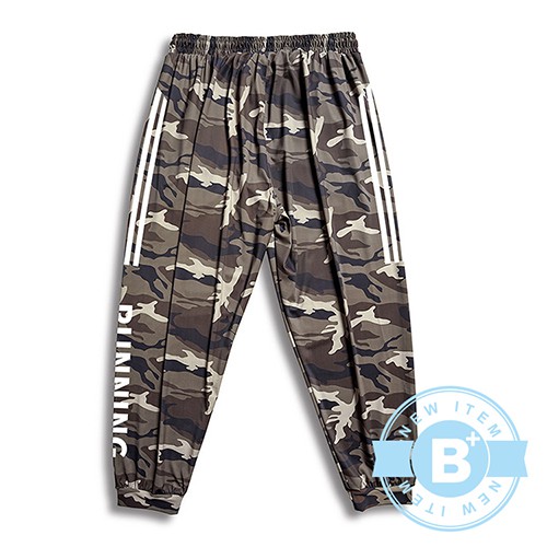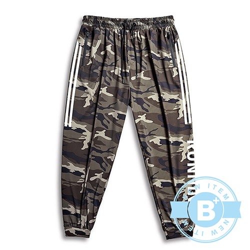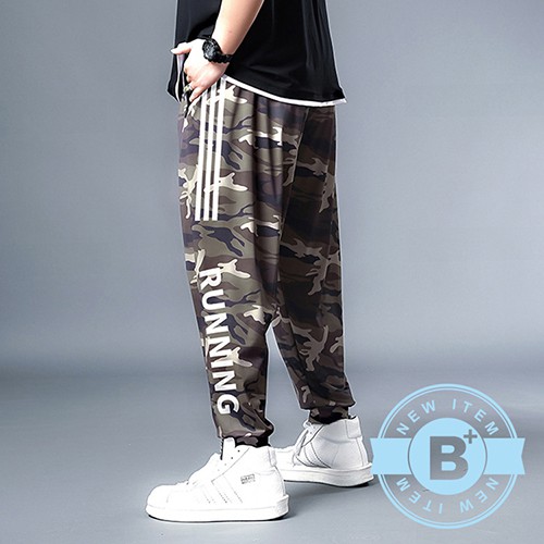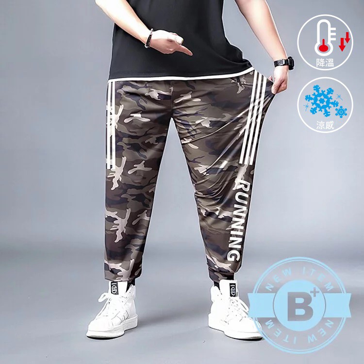 【B+大尺碼專家】鬆緊褲頭 冰絲束口迷彩長褲-綠-0204109