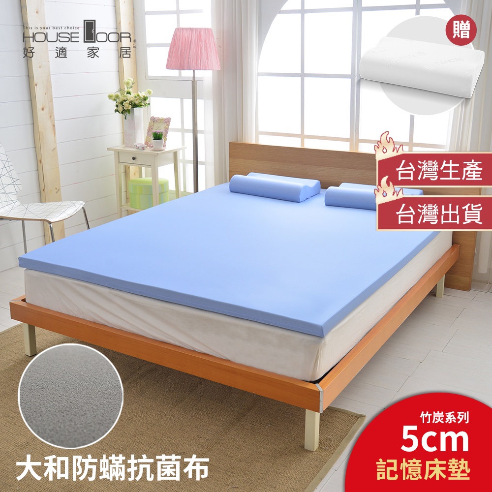 【House Door 好適家居】大和防螨抗菌表布5cm厚全平面竹炭記憶床墊-贈工學枕