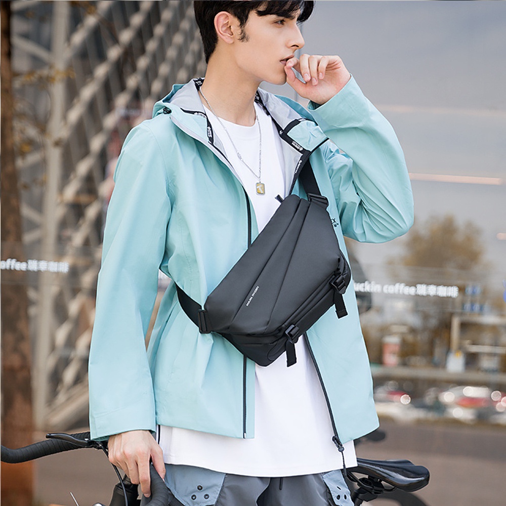 【台灣發貨】 夏麗絲新款男包休閒運動機能胸包個性斜背包潮牌單肩包防潑水多功能胸包男輕便機車潮酷單肩背包