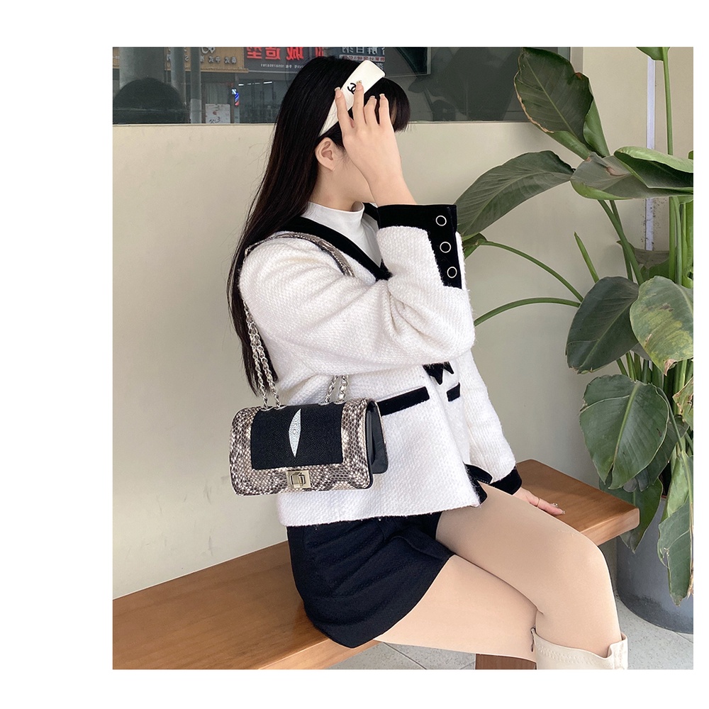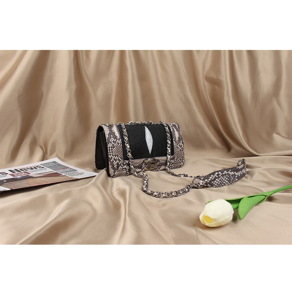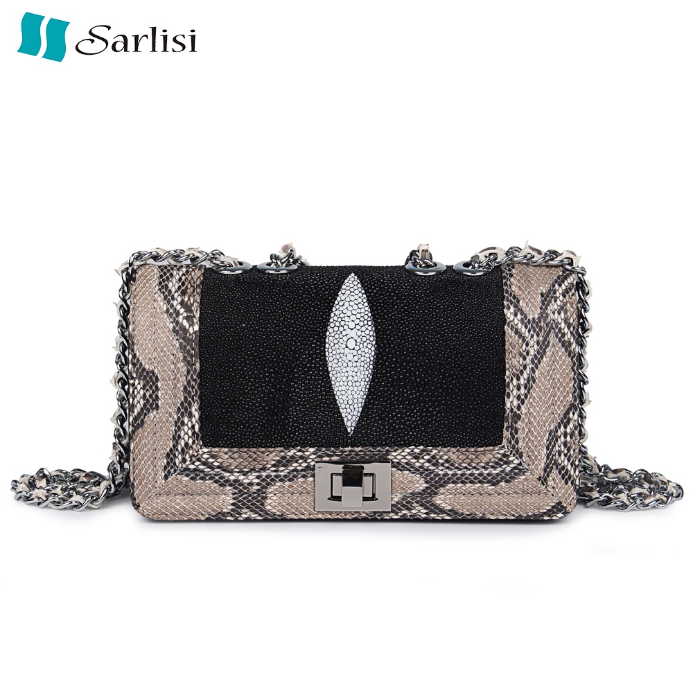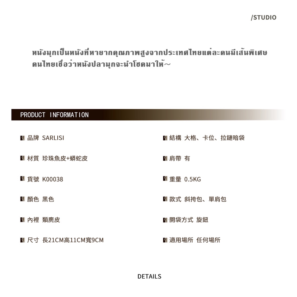 【台灣現貨】【Sarlisi】夏麗絲泰國進口珍珠魚皮鏈帶包蟒蛇邊時尚晚宴斜背包真皮側背 包小包2.55小香包