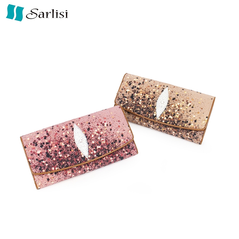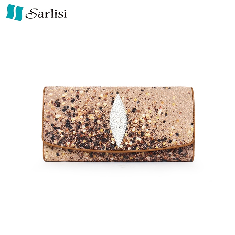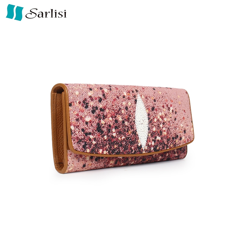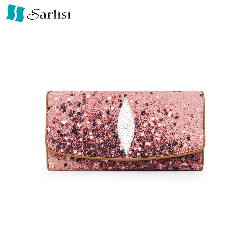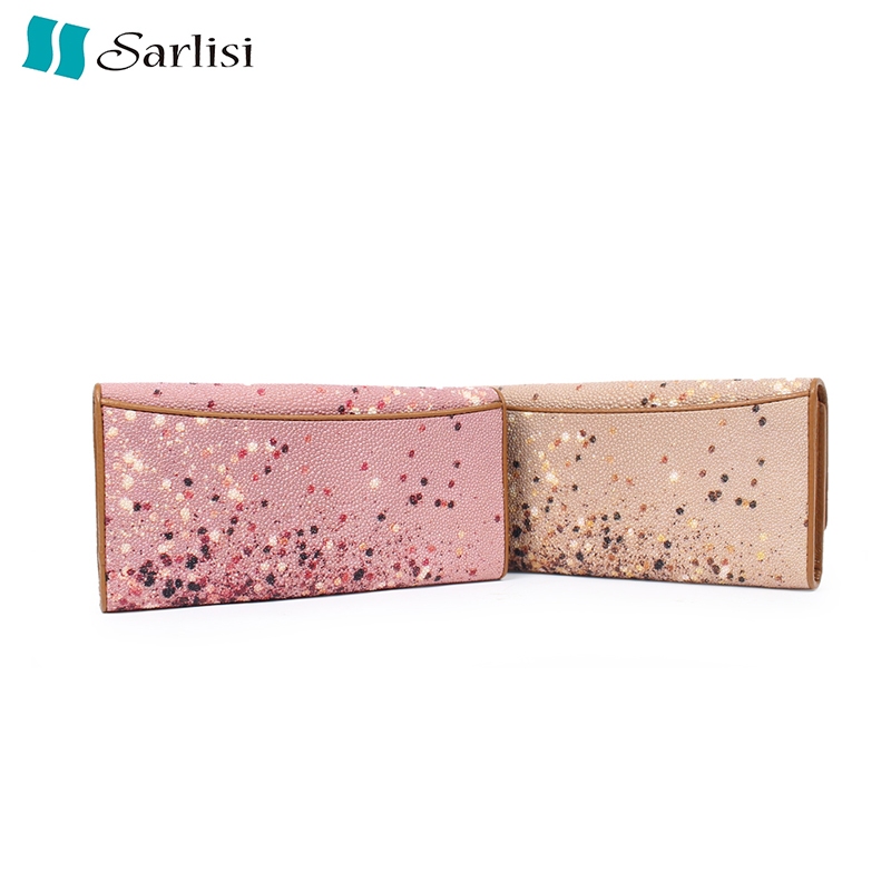 【台灣現貨】【Sarlisi 】夏麗絲新款真皮長夾無拼接珍珠魚皮錢包女長款時尚百搭女士時尚手拿包品牌專櫃