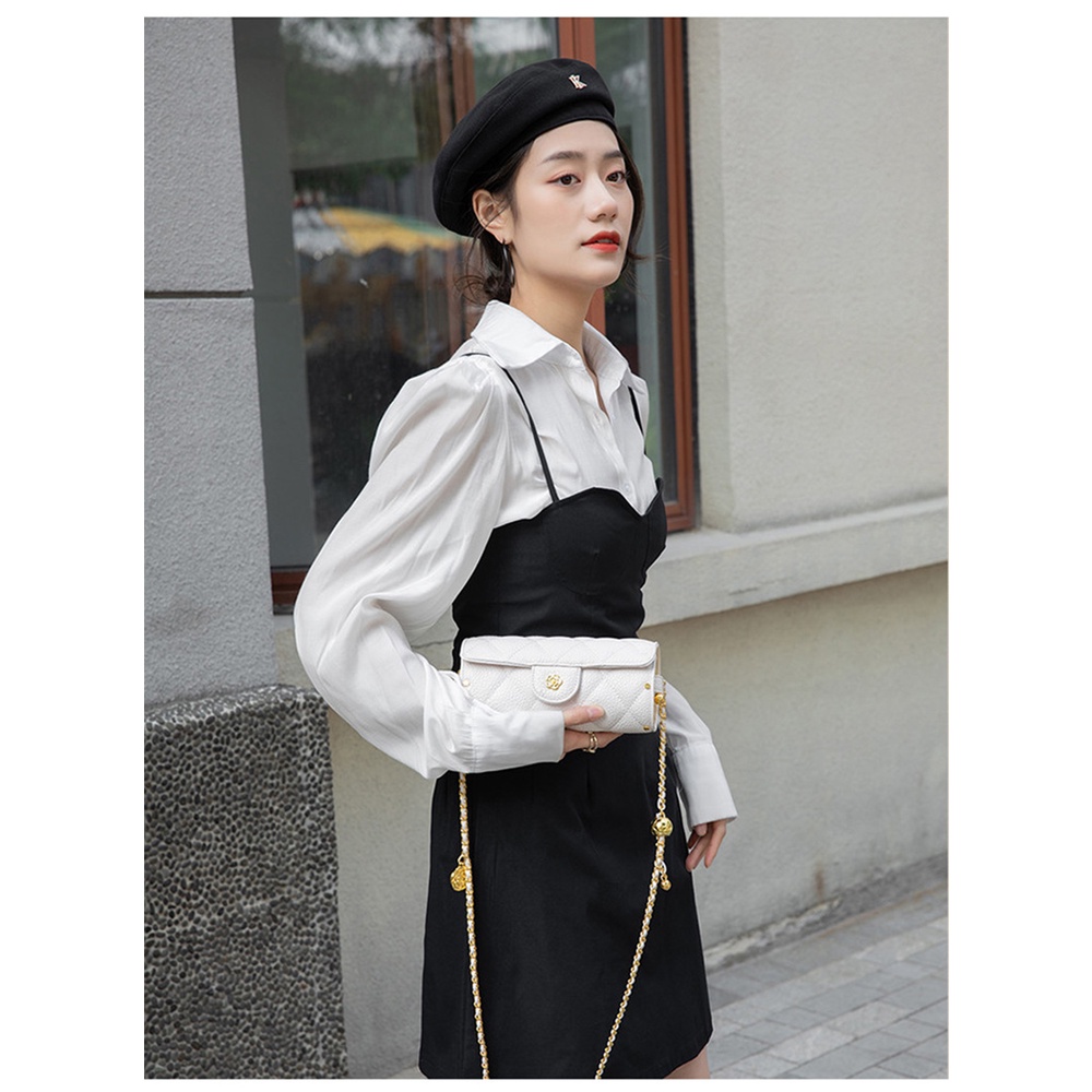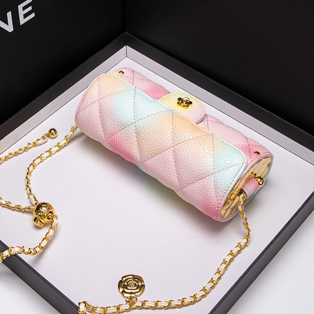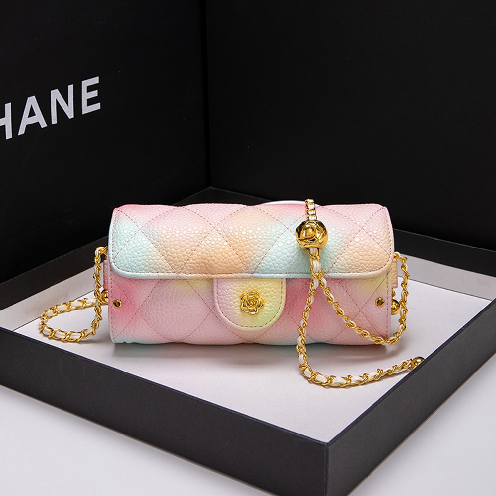 【台灣出貨】【Sarlisi 】夏麗絲迷你小包包女新款頭層牛皮圓筒包真皮小香風鏈帶包羊皮手機包口紅包魚子醬包