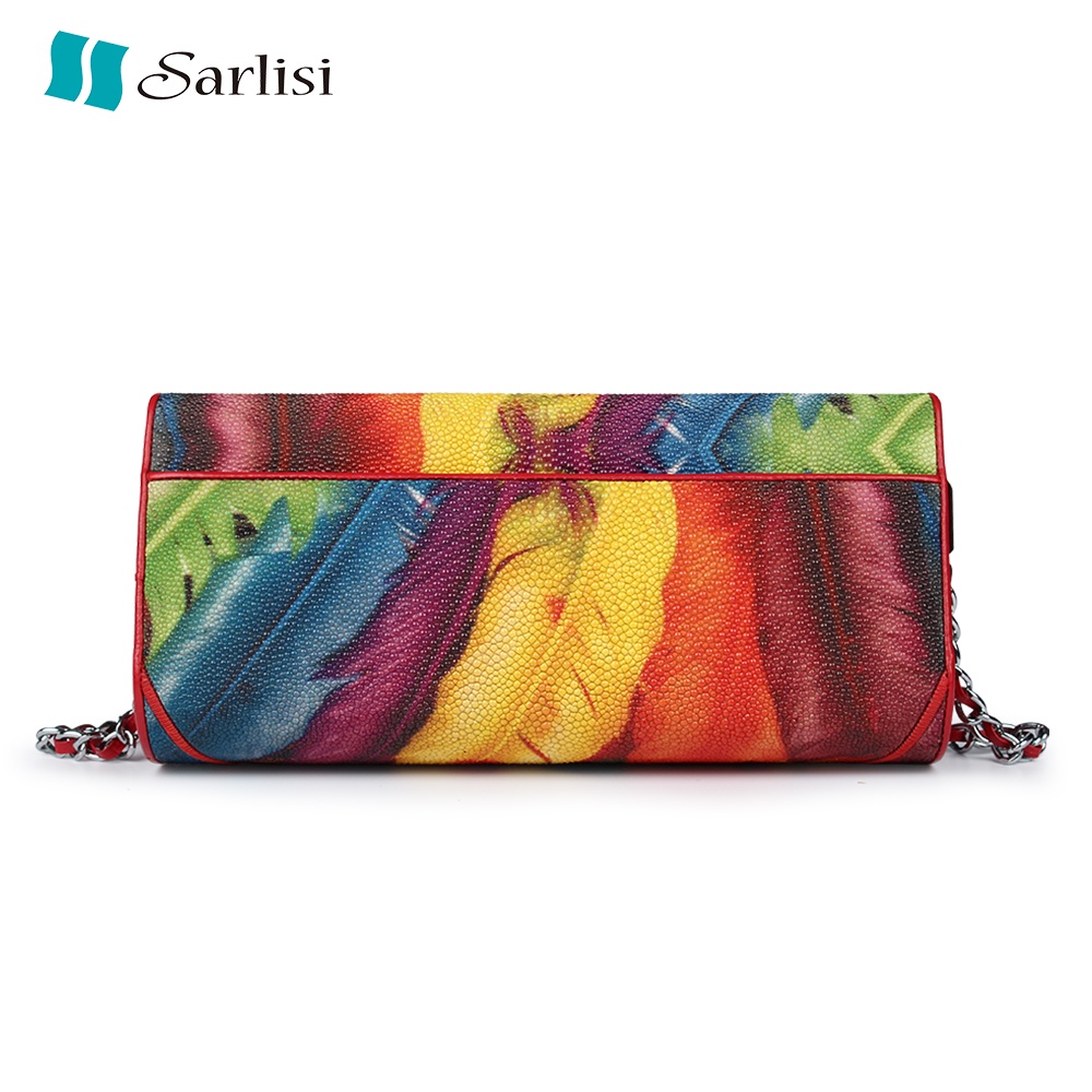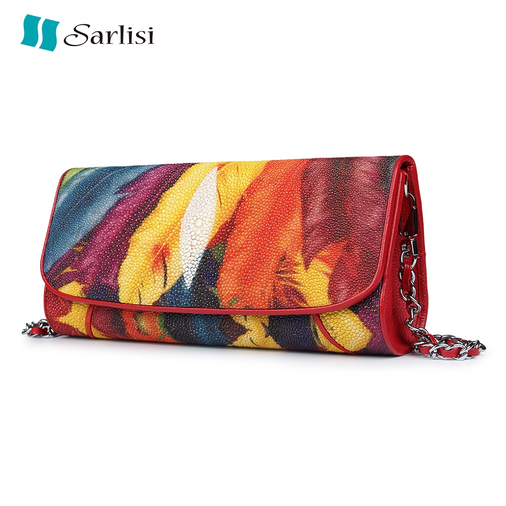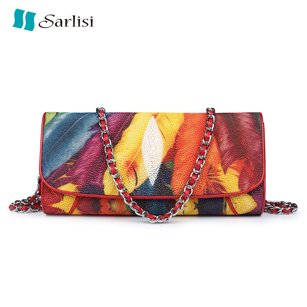 【台灣出貨】【Sarlisi 】夏麗絲泰國珍珠魚皮真皮女包手拿包時尚鏈帶包新款晚宴包女士斜背包
