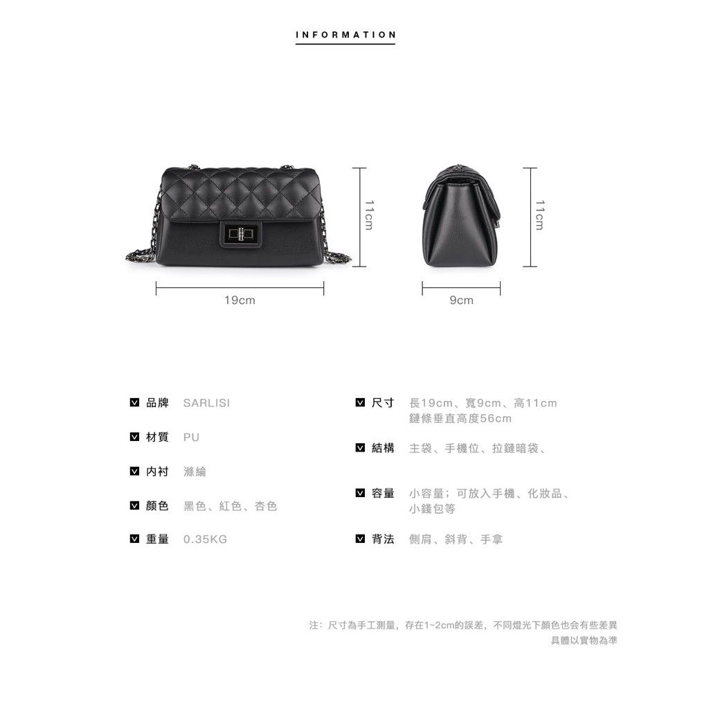 【台灣出貨】【Sarlisi】高品質PU皮菱格鏈帶包側肩包斜背包出清手拿包(三色可選 全網獨家)