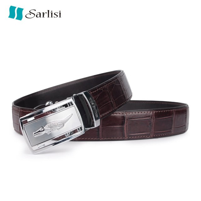 【台灣出貨】【Sarlisi】泰國鱷魚皮帶真皮男腰帶大格紋鱷魚肚皮皮帶自動扣男士腰帶