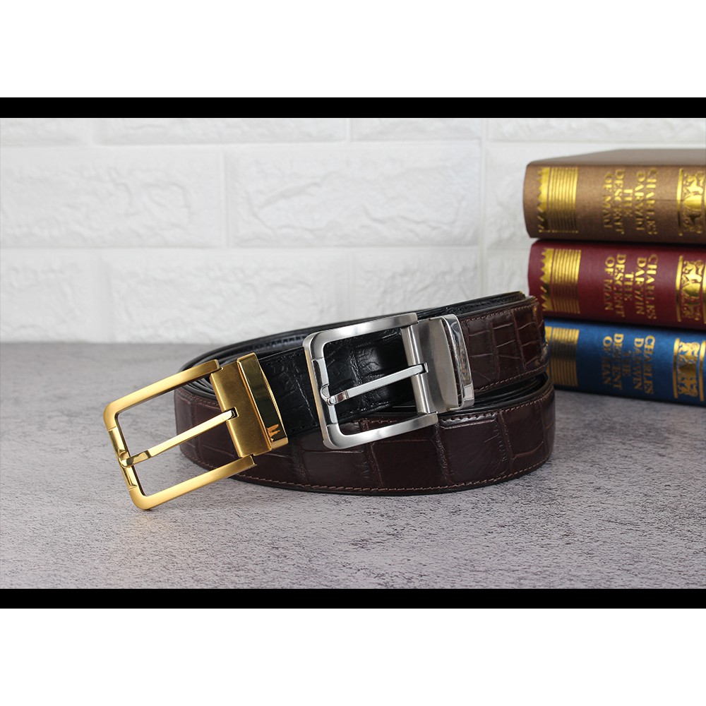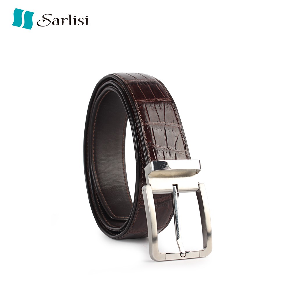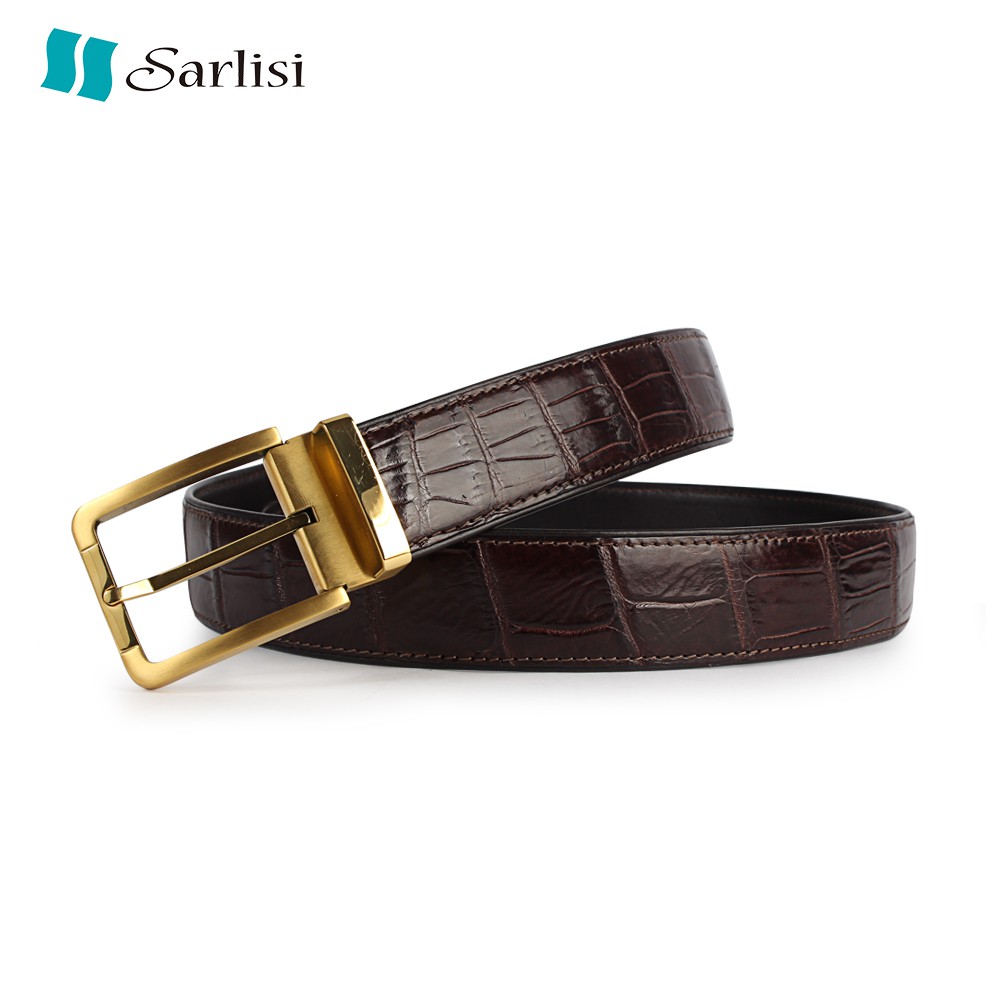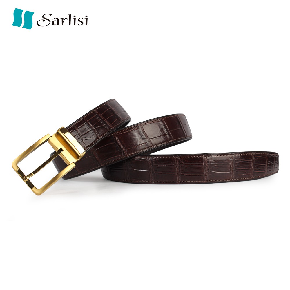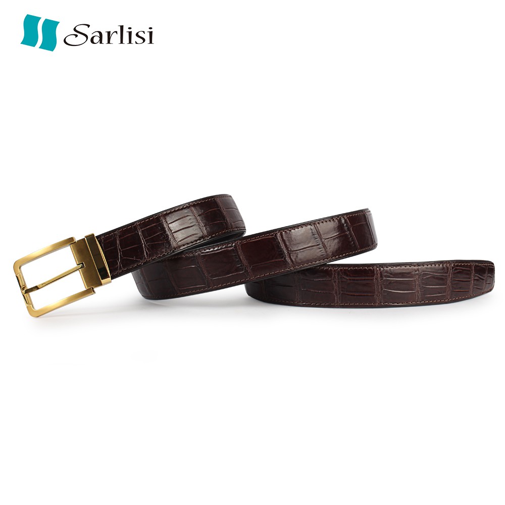 【台灣出貨】【Sarlisi】真皮鱷魚皮帶男士大格紋鱷魚肚皮腰帶 (新款特價 全網獨家)