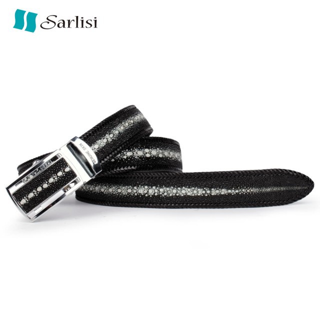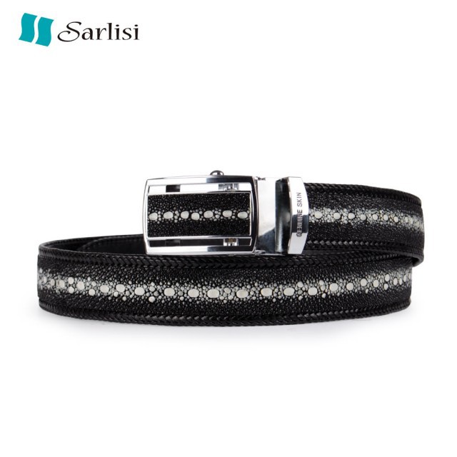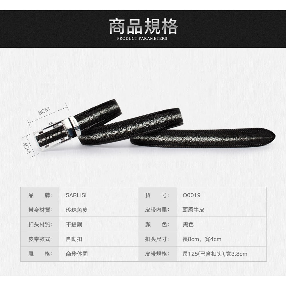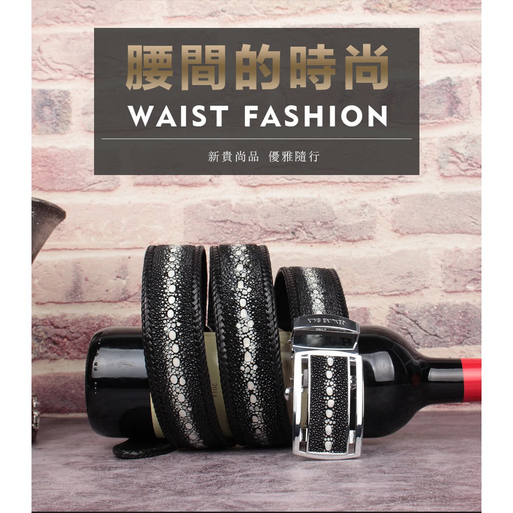 【台灣出貨】【Sarlisi】泰國珍珠魚皮皮帶男真皮腰帶手工編織包邊褲腰帶