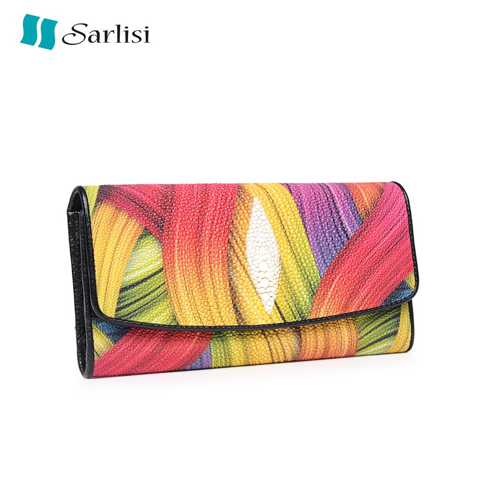 【台灣現貨】【Sarlisi 】夏麗絲新款泰國進口真皮珍珠魚皮錢包女長款長夾大容量長夾女士手拿包