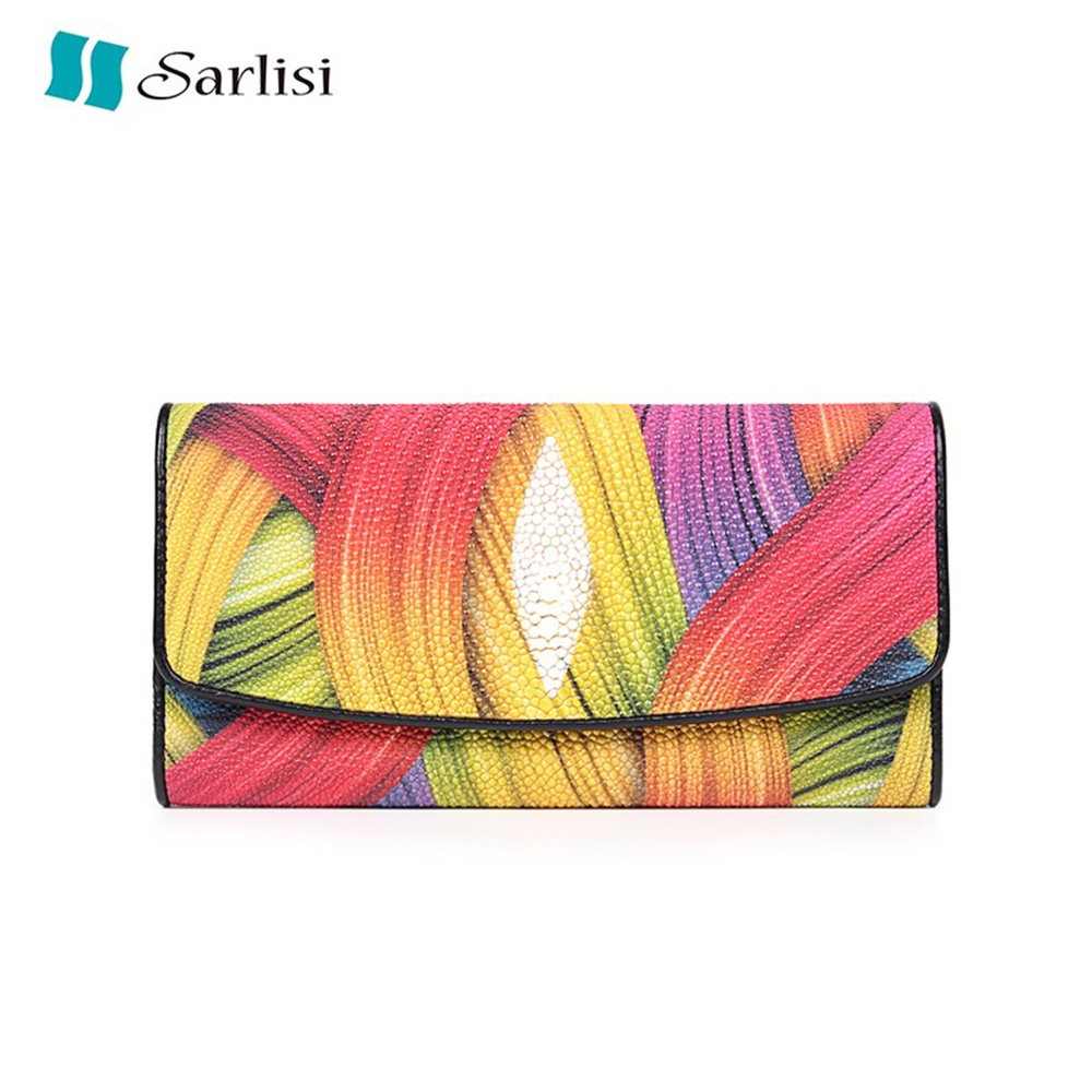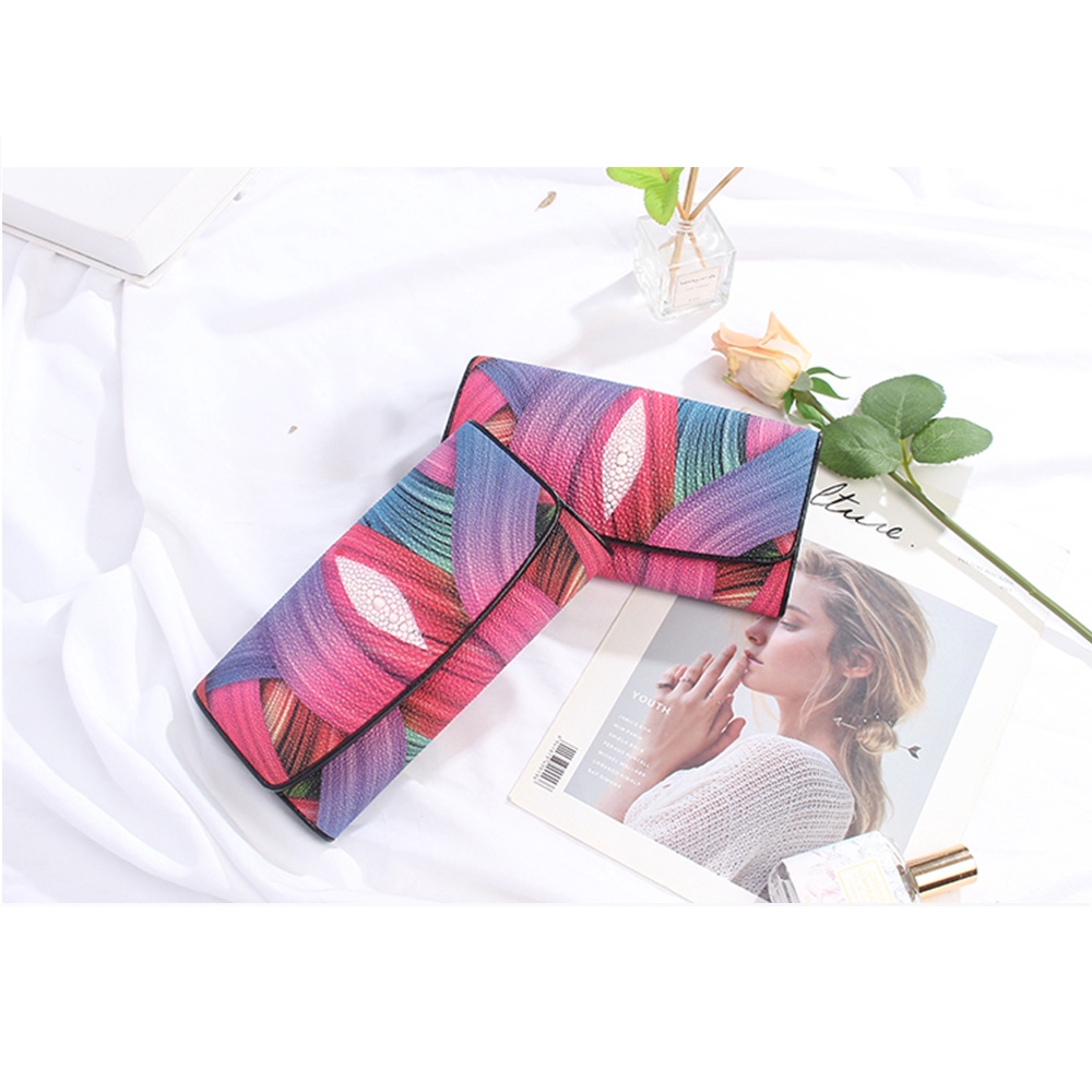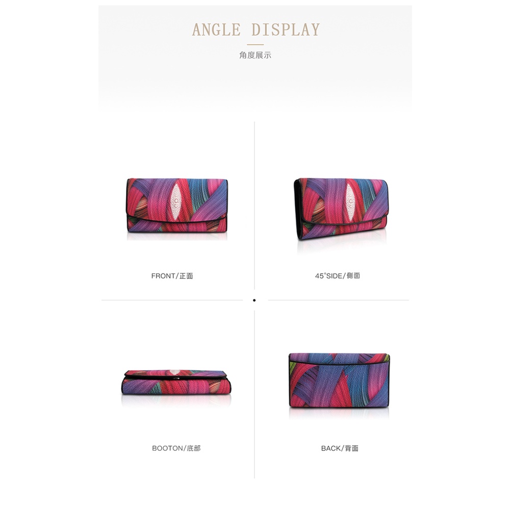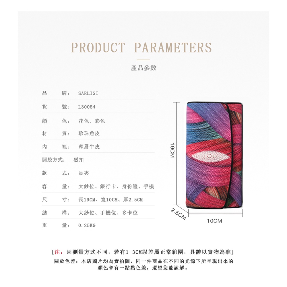 【台灣現貨】Sarlisi泰國珍珠魚皮長夾真皮三折長夾時尚典雅手拿包錢包
