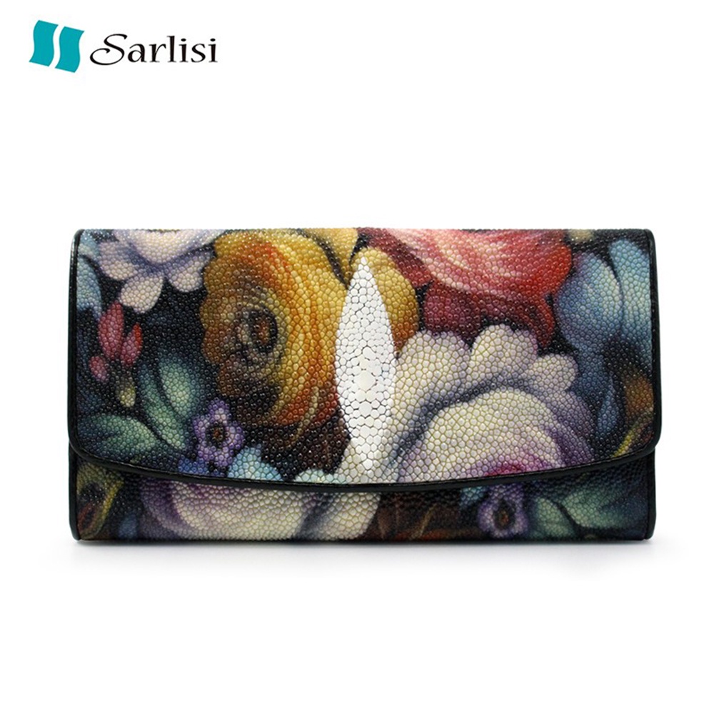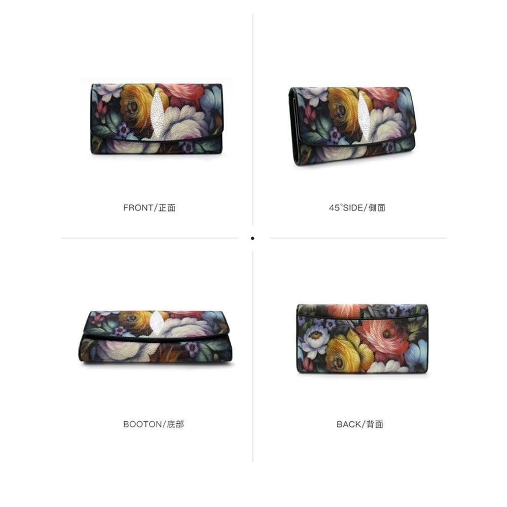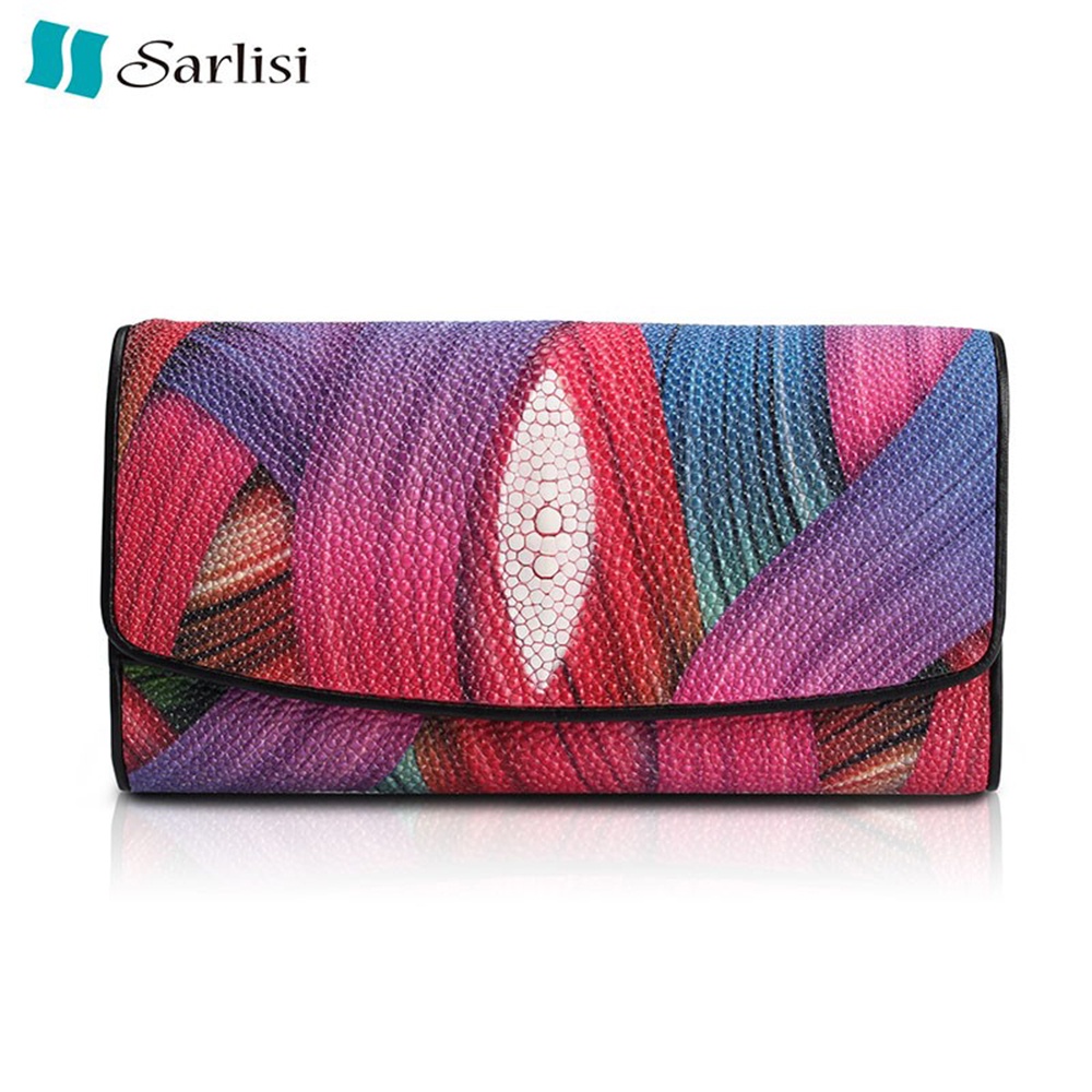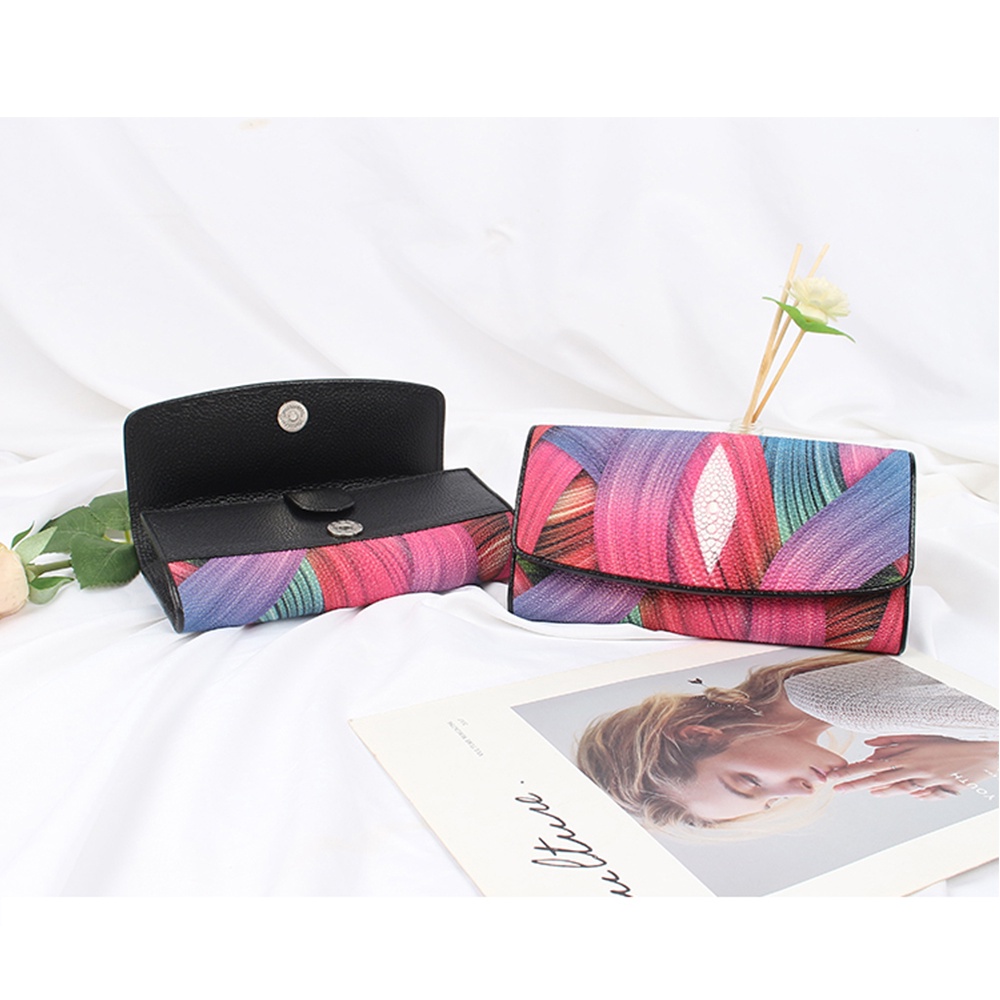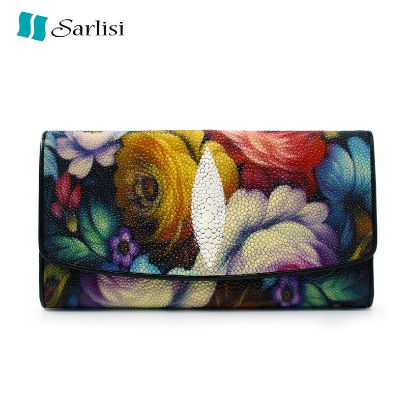 【台灣現貨】Sarlisi泰國珍珠魚皮長夾真皮三折長夾時尚典雅手拿包錢包