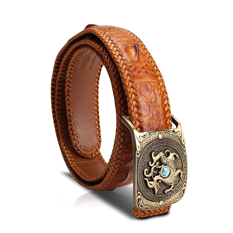 【台灣出貨】【Sarlisi】尊爵男士鱷魚皮皮帶腰帶單排骨編織皮帶 黑/咖啡色/棕色