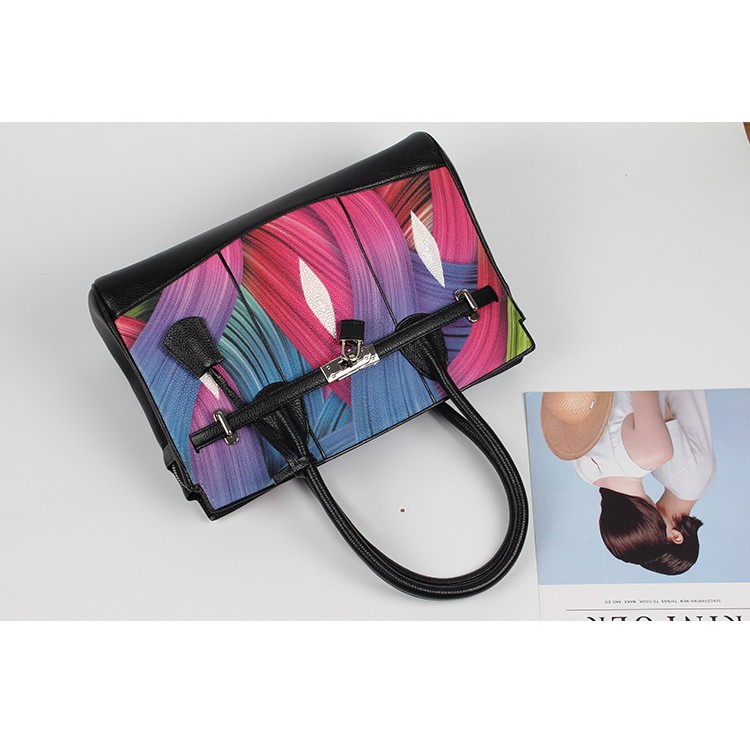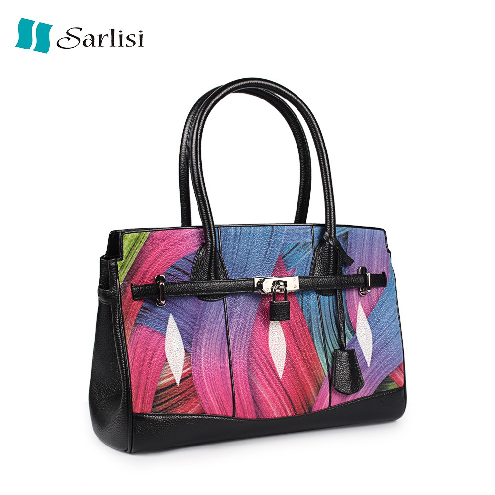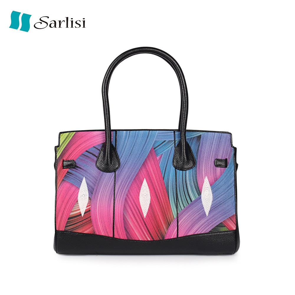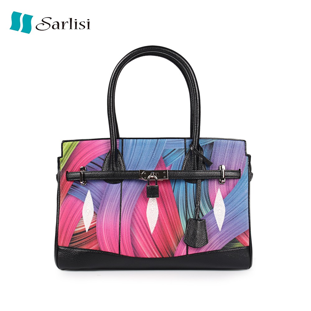 【台灣出貨】【Sarlisi】輕奢真皮泰國進口珍珠魚皮女包手提包大包真皮鉑金包