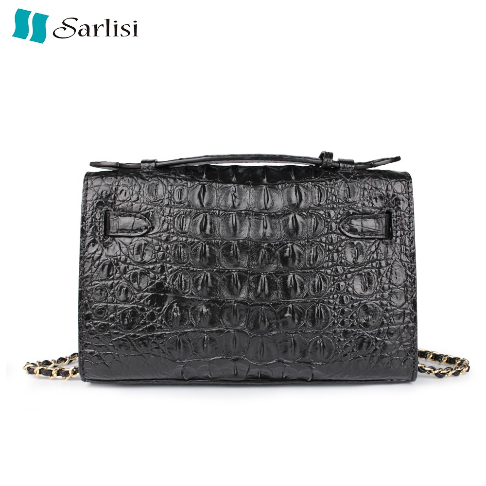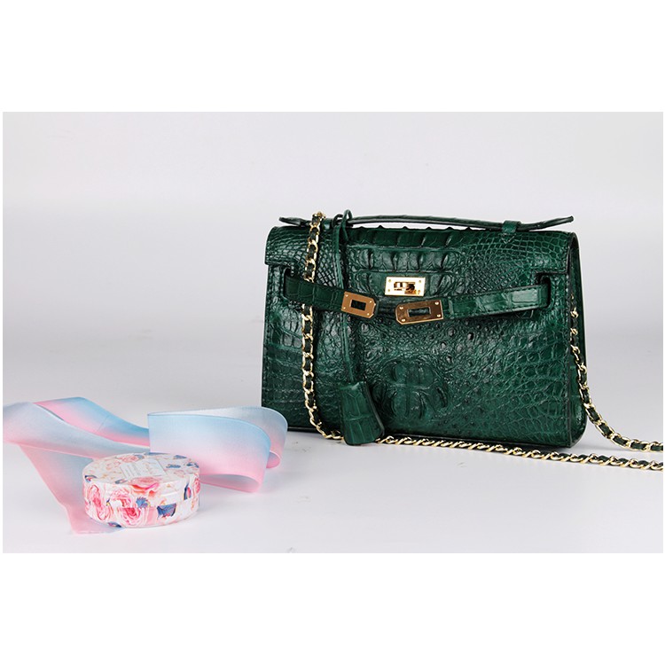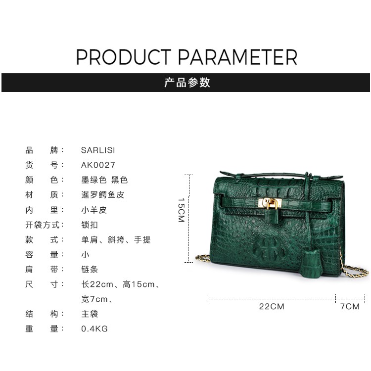 【台灣出貨】【Sarlisi】真皮鱷魚皮包女包凱莉包輕奢斜背包手提包 黑色/墨綠色
