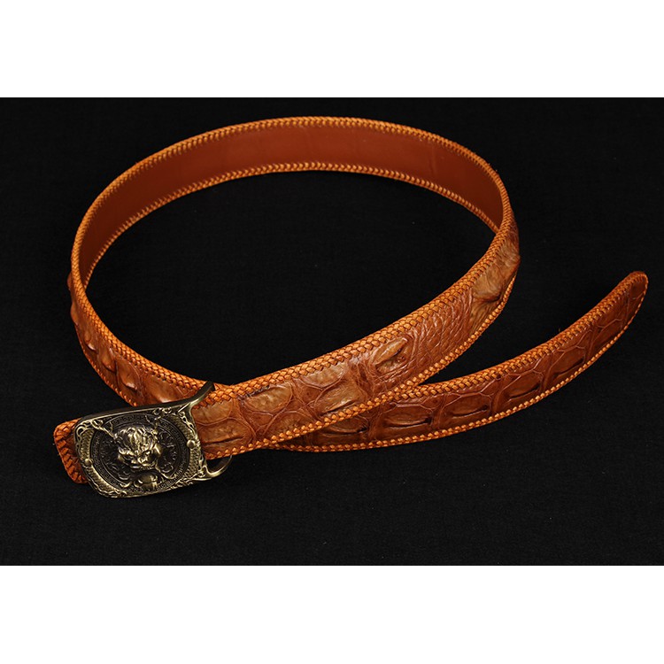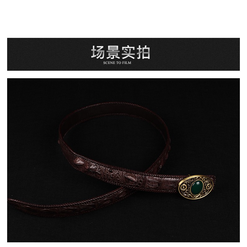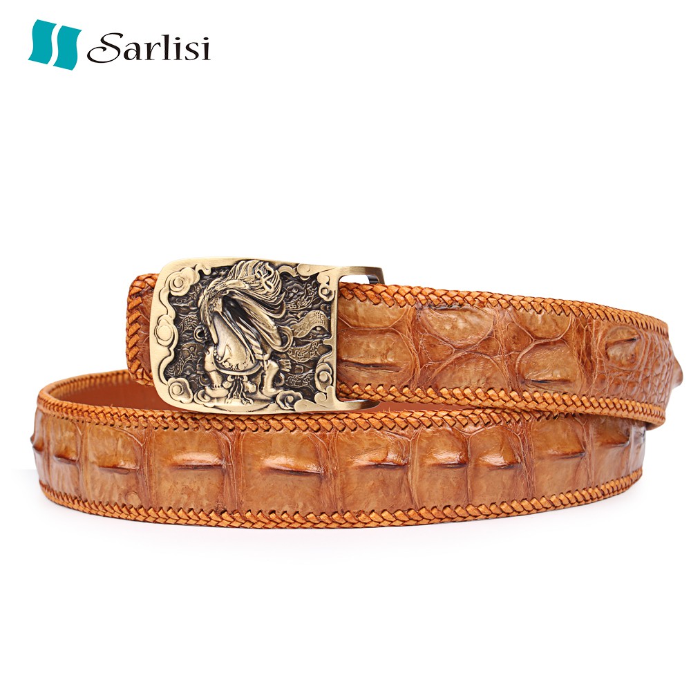 【台灣出貨】【Sarlisi】臻品真皮鱷魚皮皮帶男士商務腰帶 財神銅釦 黑/咖啡/黃色 三款可選