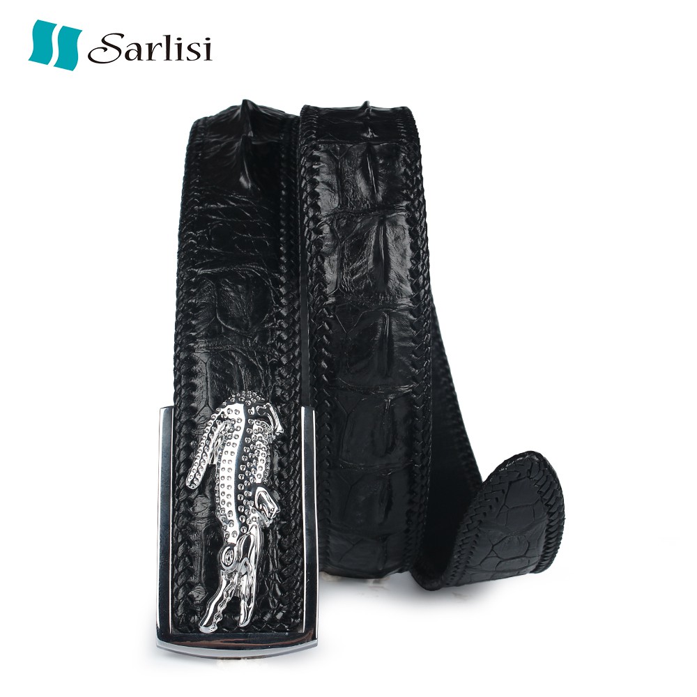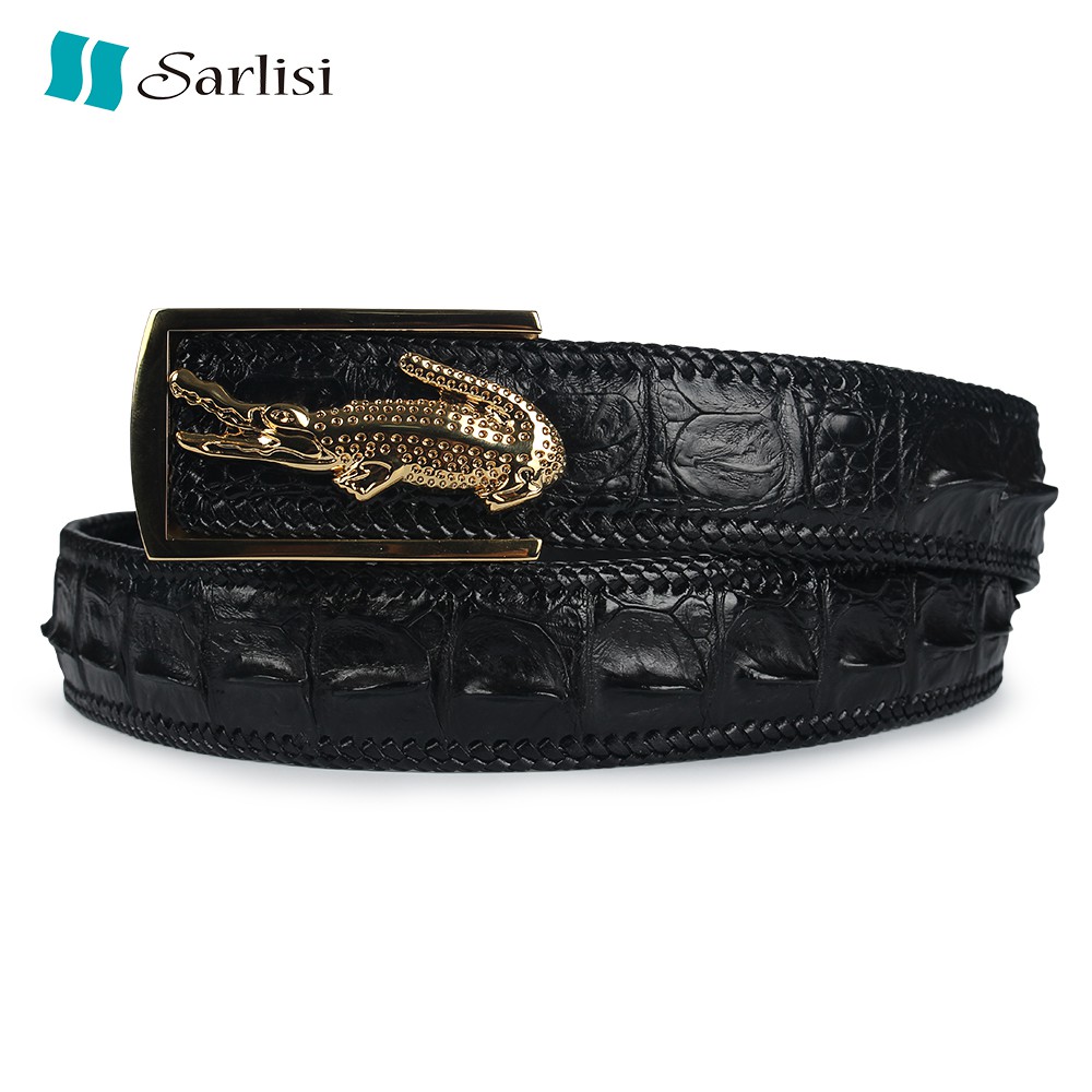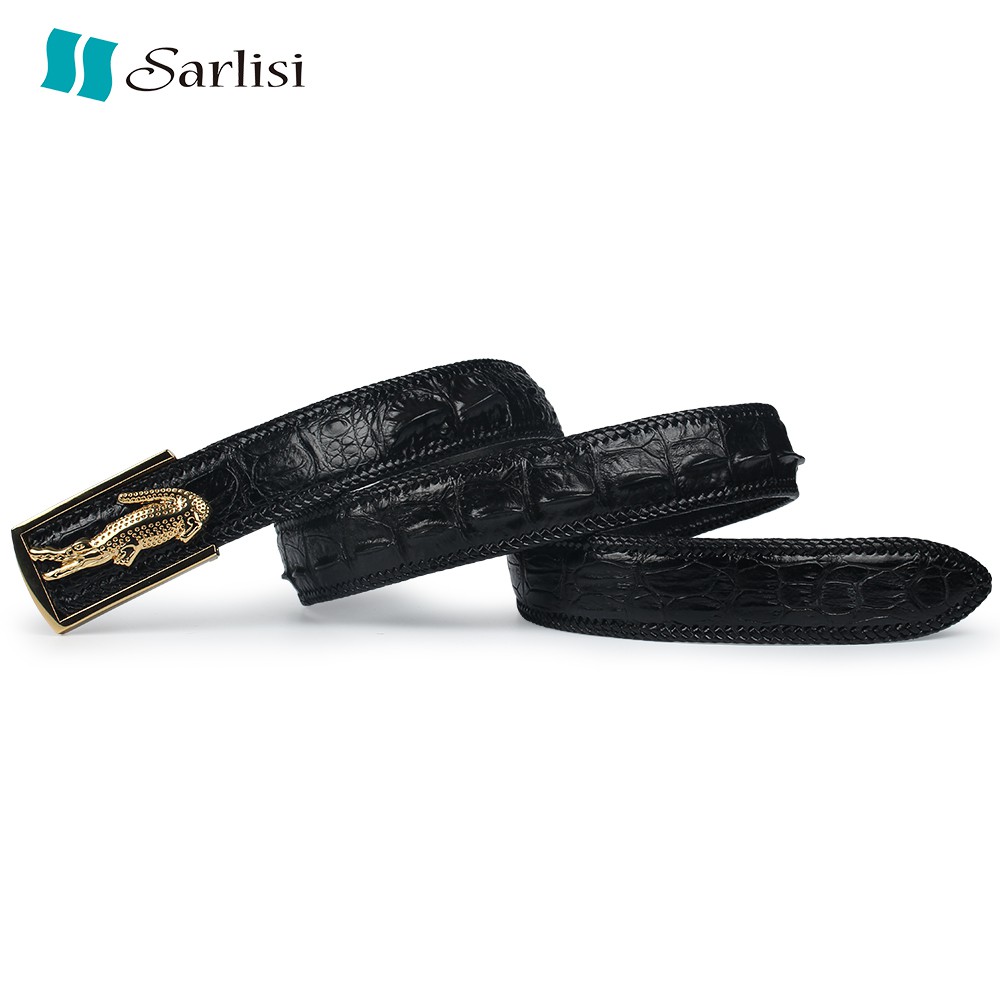 【台灣出貨】【Sarlisi】真皮泰國鱷魚皮皮帶男士腰帶編織 黑色/咖啡色 三款可選