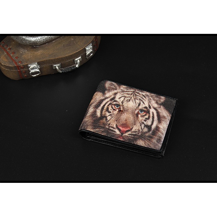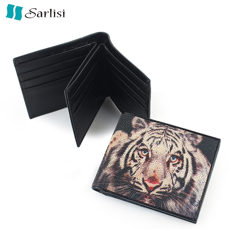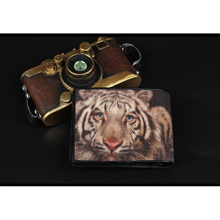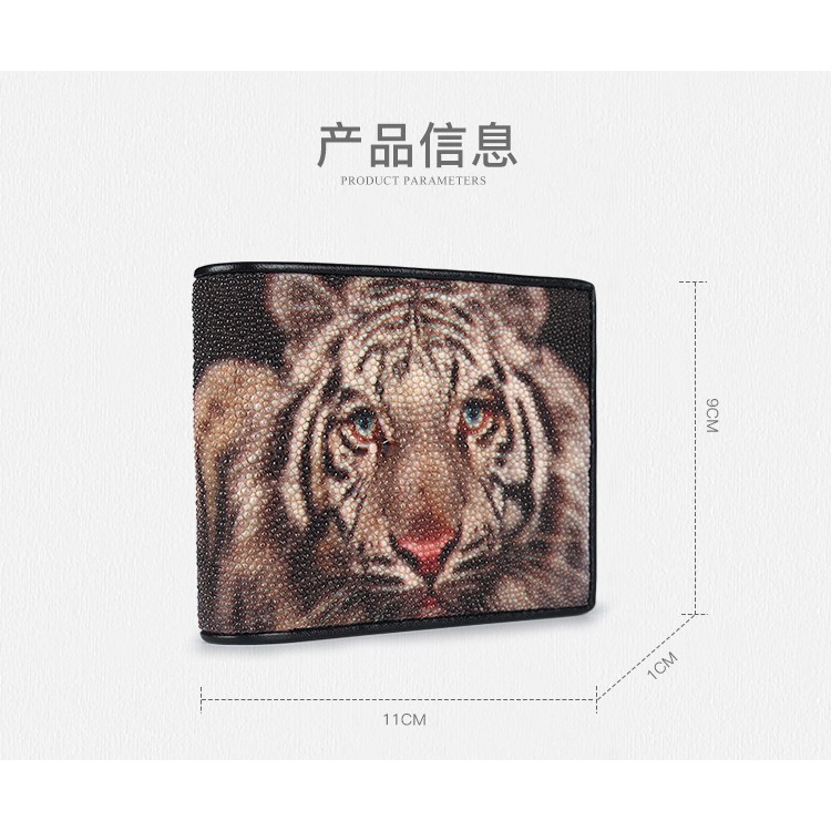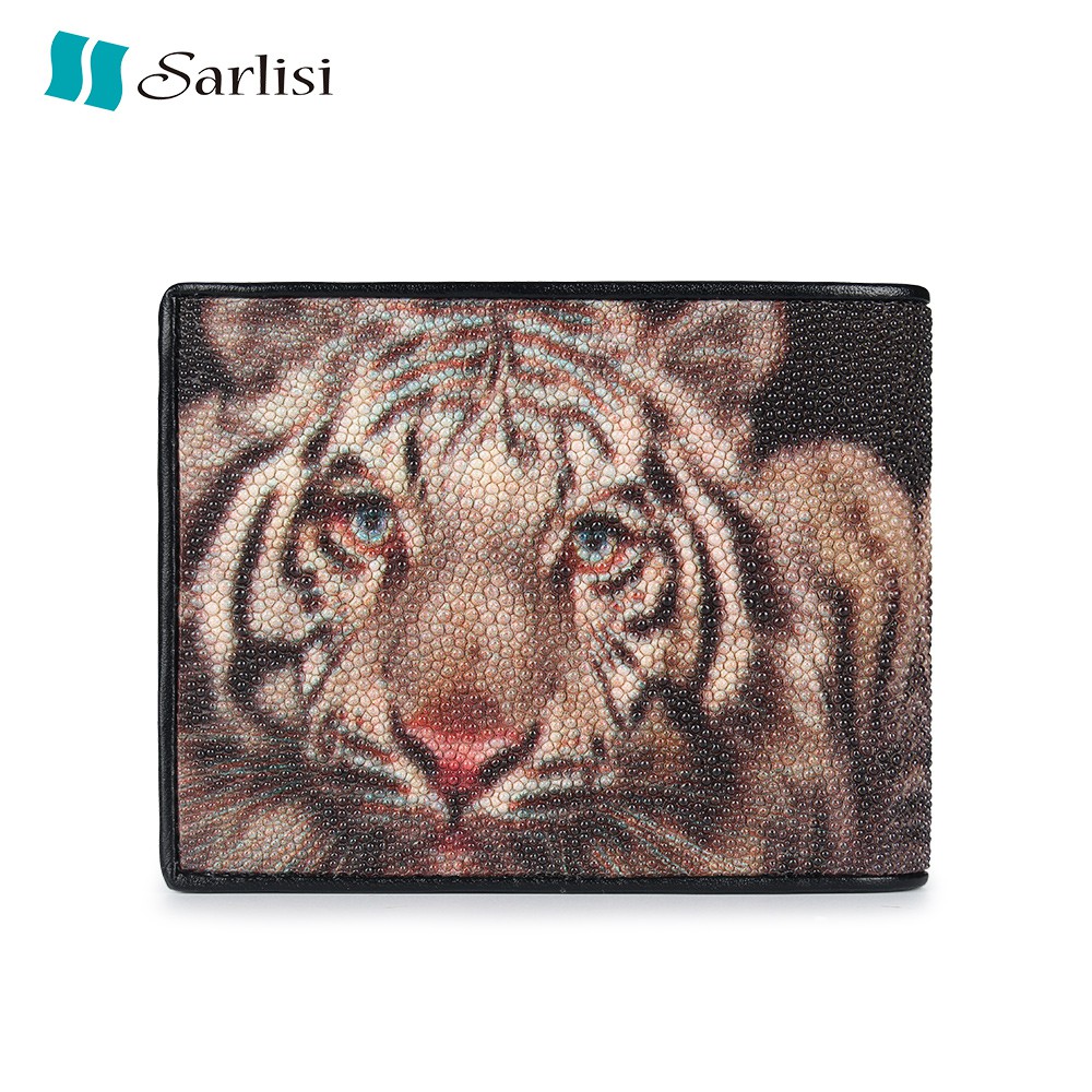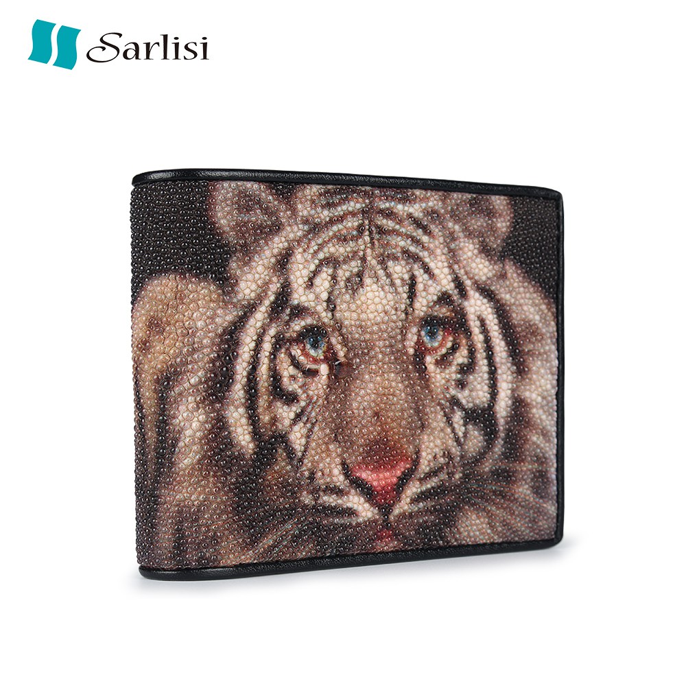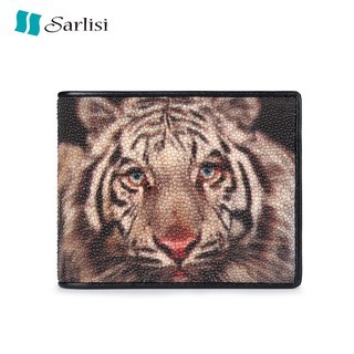 【台灣出貨】【Sarlisi】真皮珍珠魚皮夾短夾對折錢包 虎頭紋