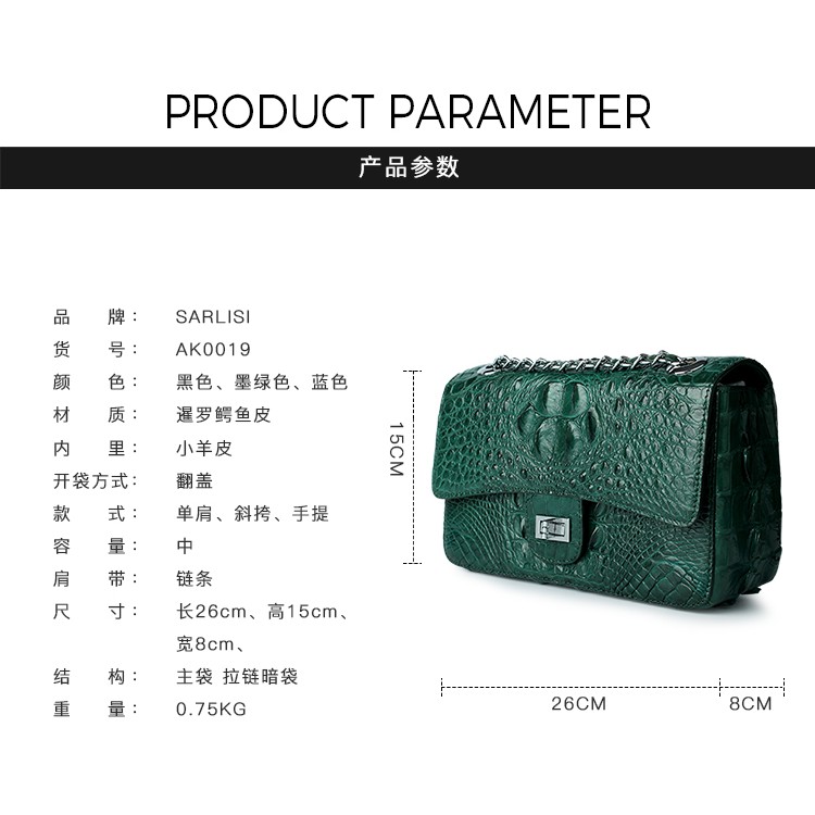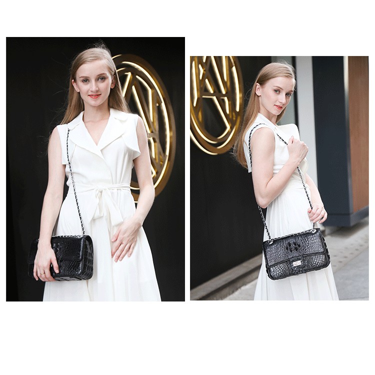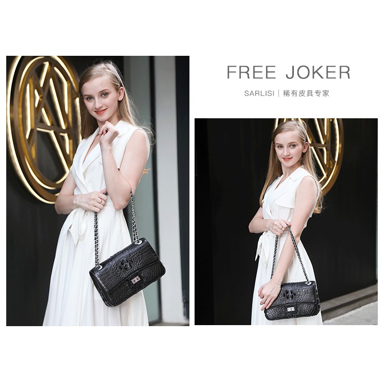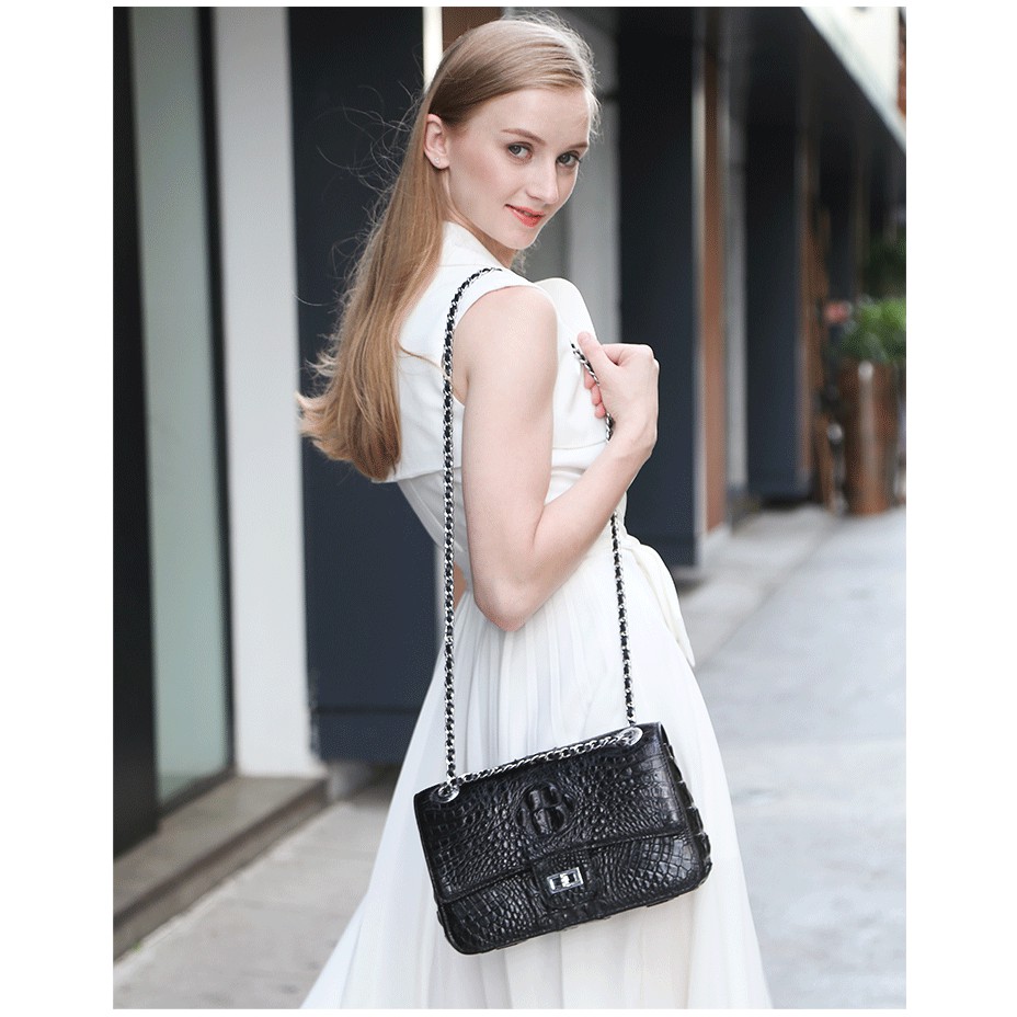 【台灣出貨】【Sarlisi】泰國進口清麗臻蘊鱷魚皮包側背包斜背包小香風2.55鏈條鏈帶包真皮小方包(出清款)