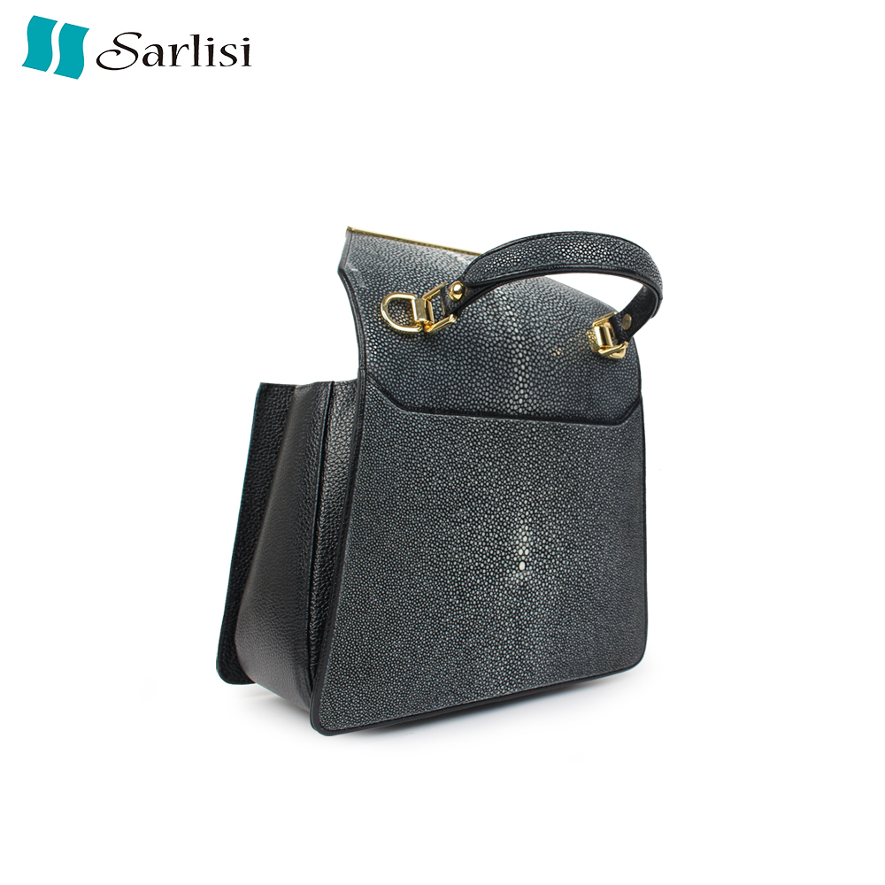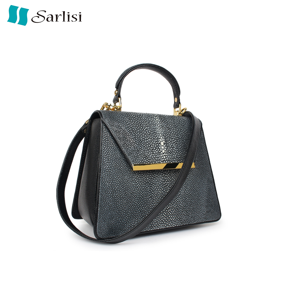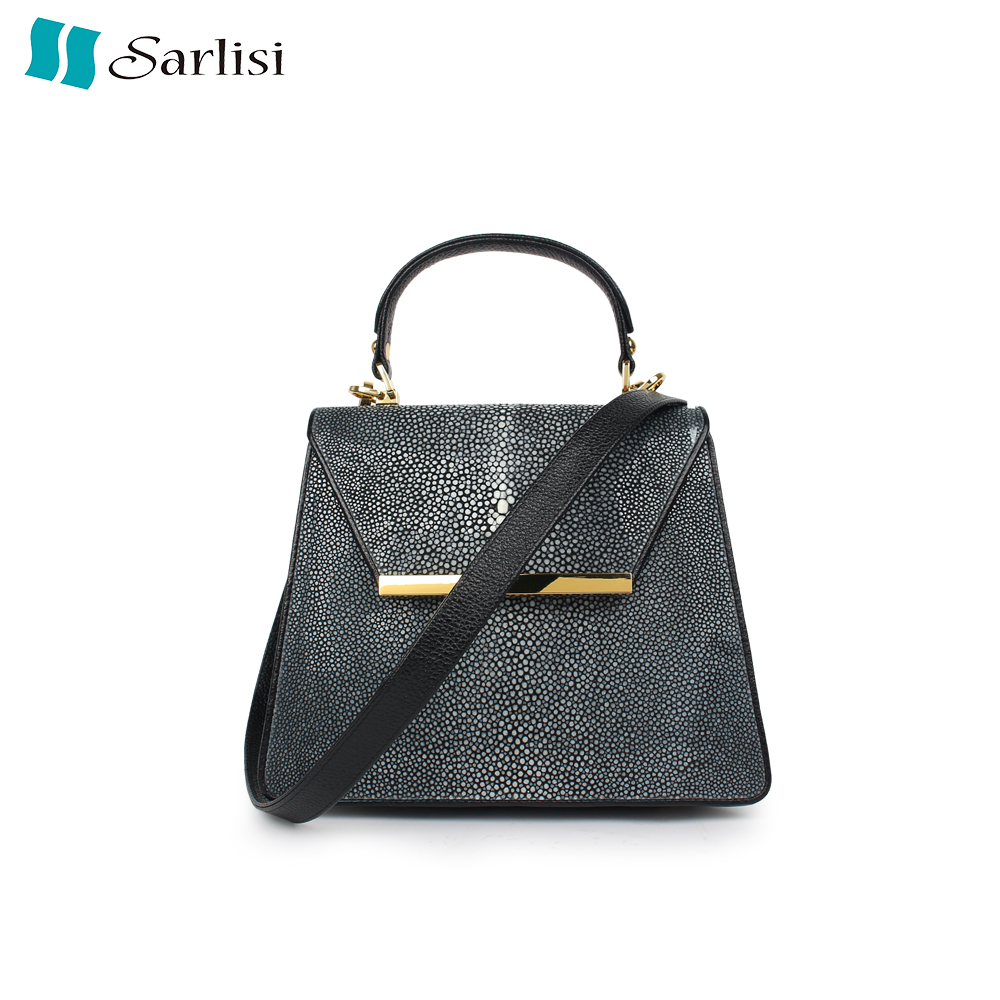 【台灣出貨】SARLISI泰國進口磨珠拋光高檔真皮女包珍珠魚凱莉包側背女包典雅商務通勤小方包