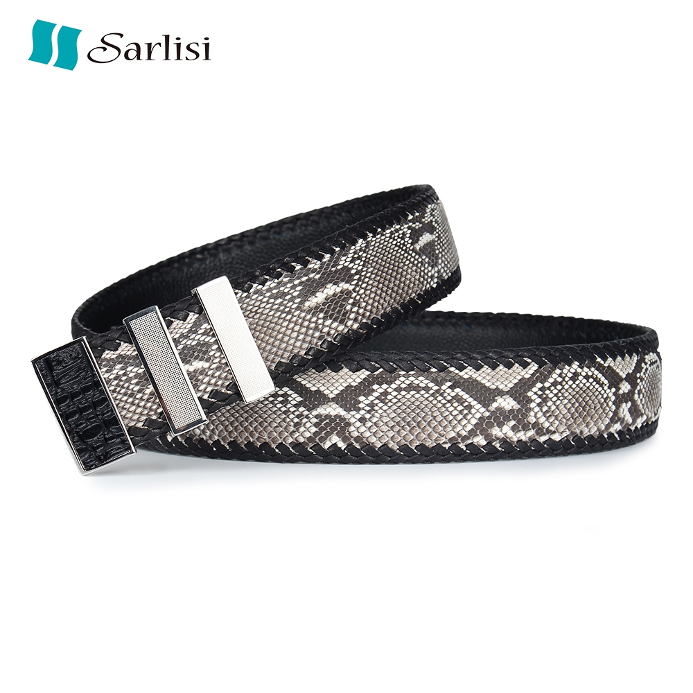 【台灣出貨】【Sarlisi 】夏麗絲泰國進口編織蟒蛇皮褲帶真皮男士平滑扣腰帶商務休閒皮帶