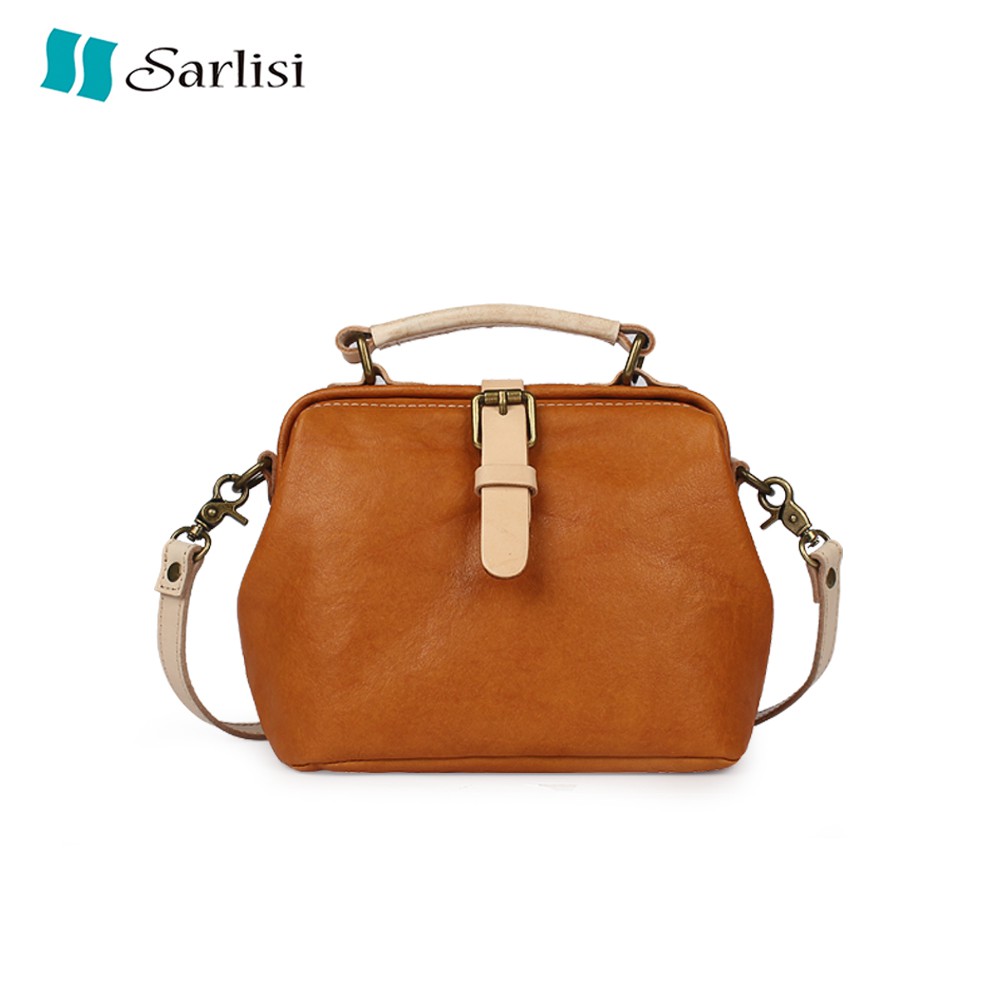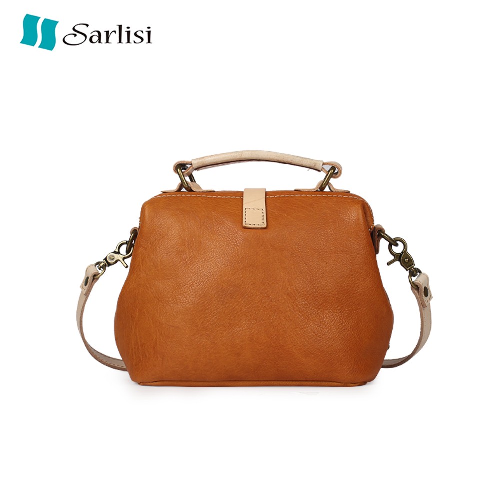 【台灣出貨】【Sarlisi 】夏麗絲植鞣皮女包復古軟皮包包真皮牛皮單肩斜挎包小眾設計手提包醫生包