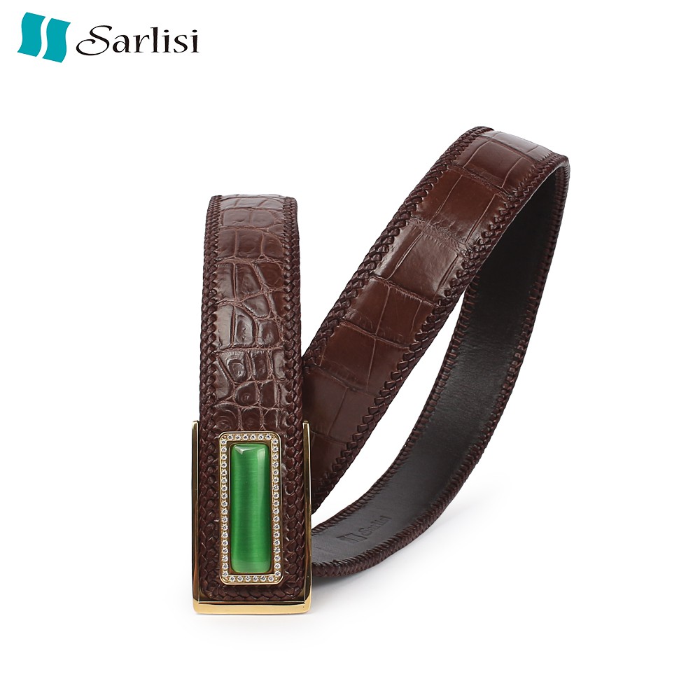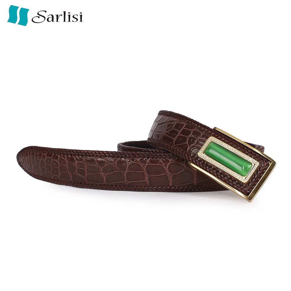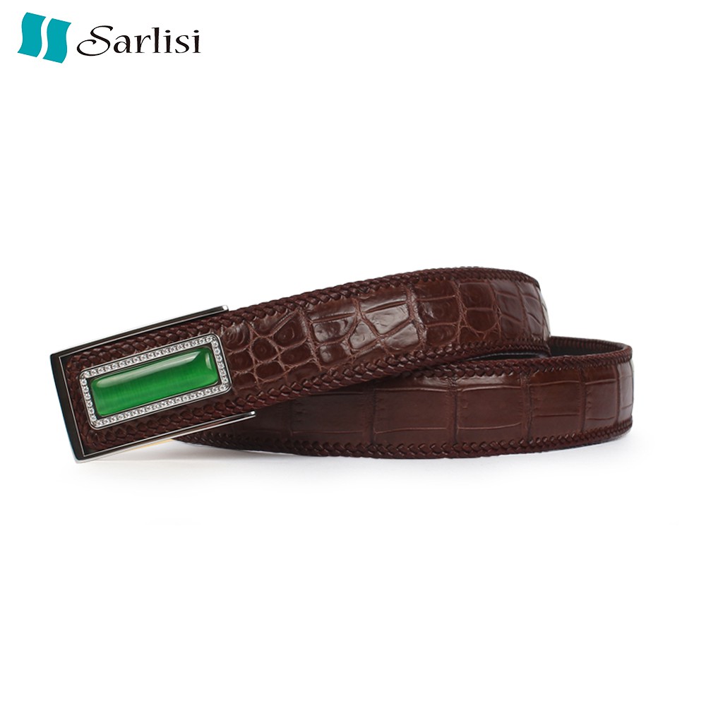 【台灣出貨】【Sarlisi 】夏麗絲泰國真皮鱷魚皮腹皮皮帶大竹節紋編織男士腰帶正品褲帶