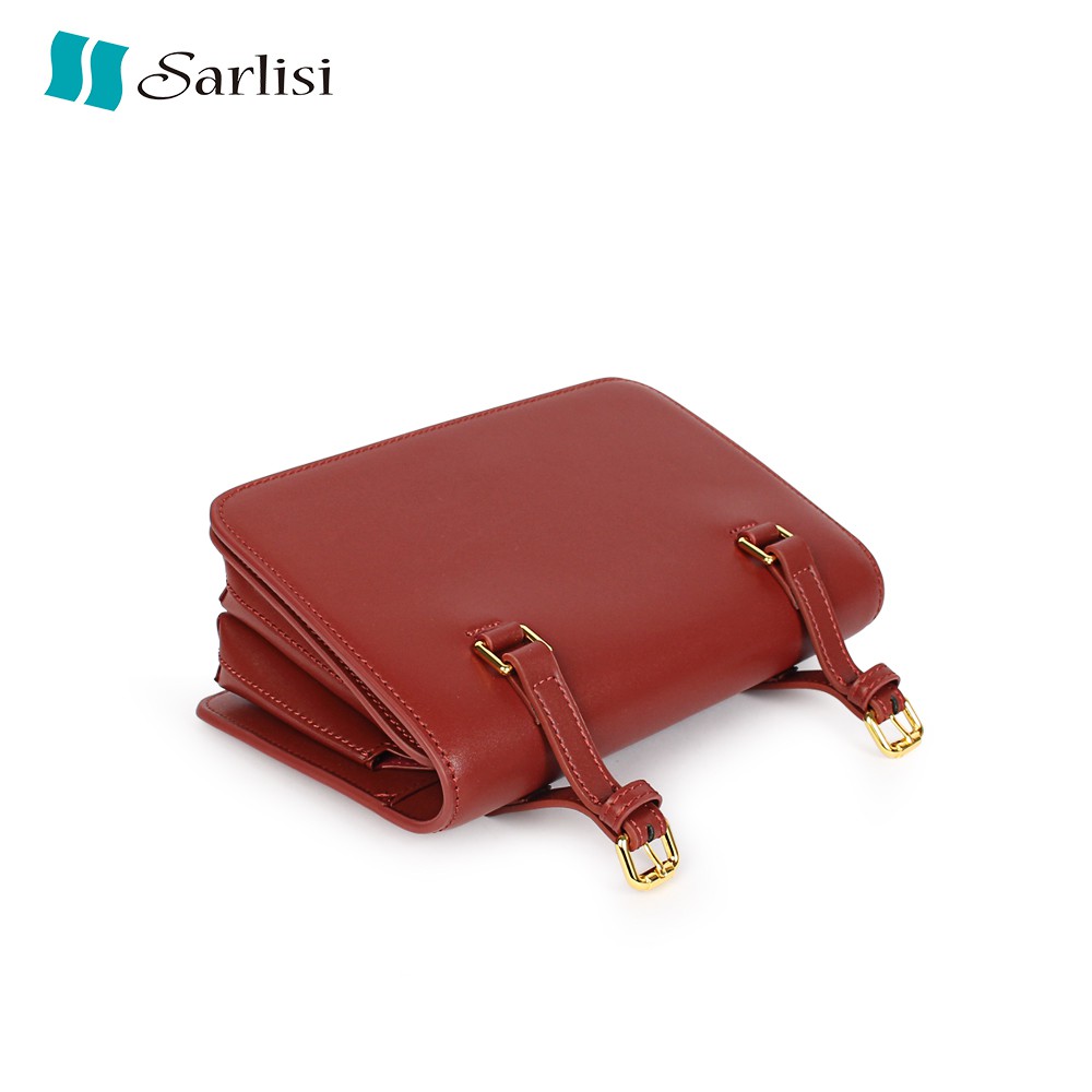 【台灣出貨】【出清價】夏麗絲真皮牛皮包包女包新款氣質單肩斜背包女士百搭風琴小方包