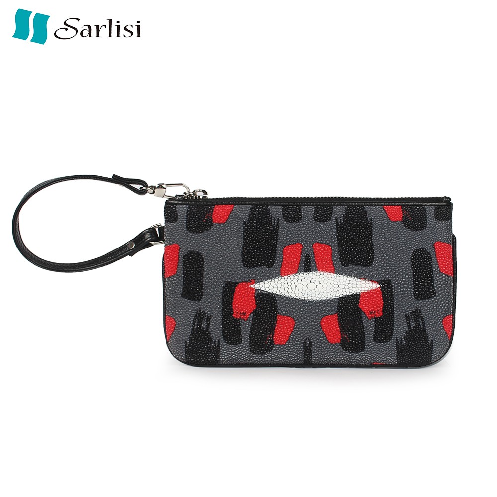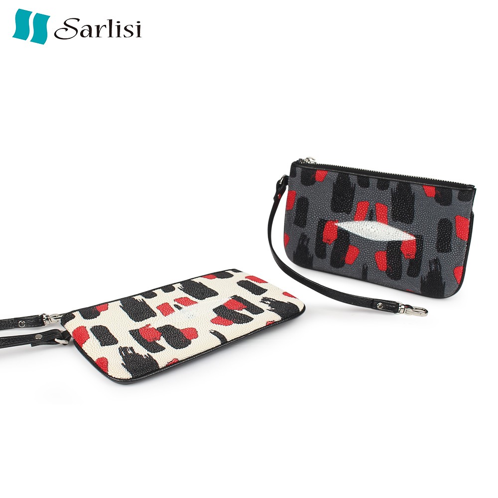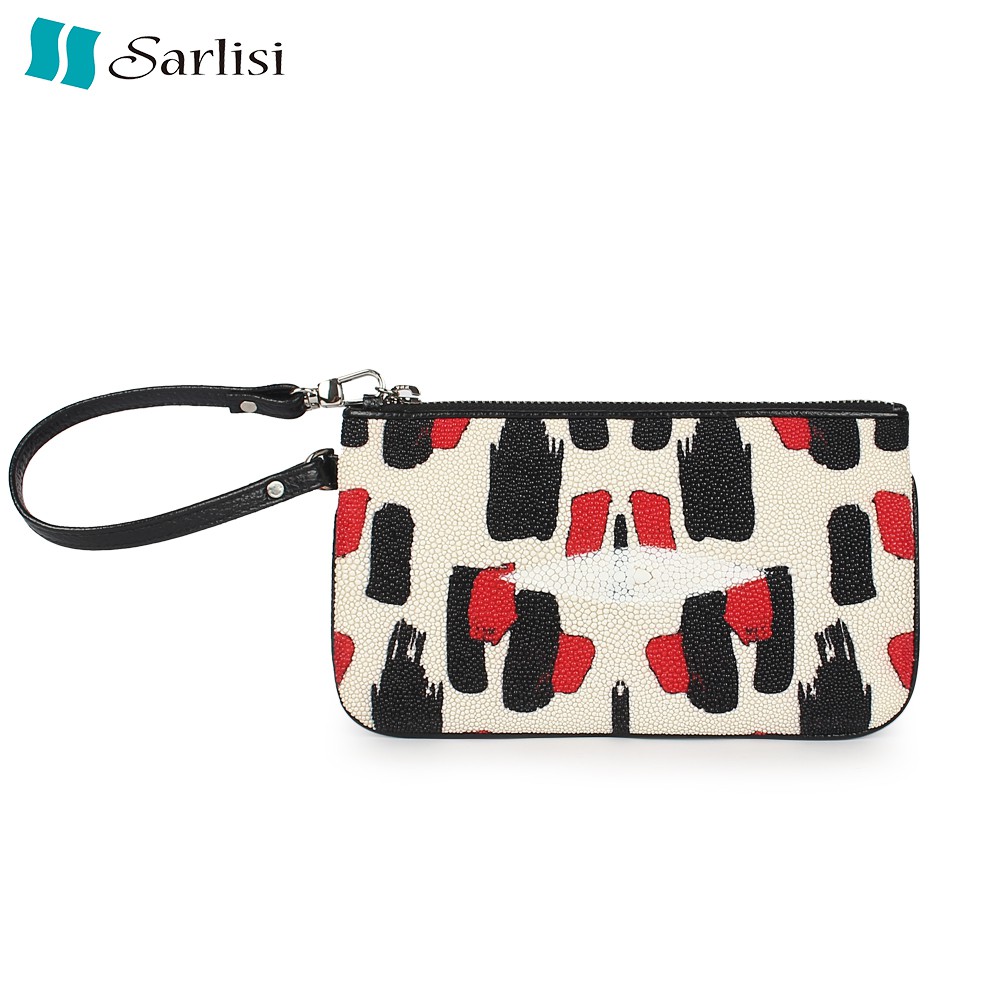 【Sarlisi 】虧本出清夏麗絲泰國新款真皮錢包女長款無拼接珍珠魚皮拉鍊小包時尚手拿包品牌專櫃女士長夾