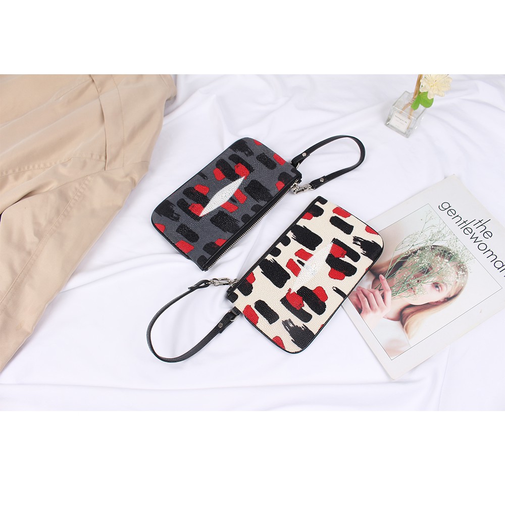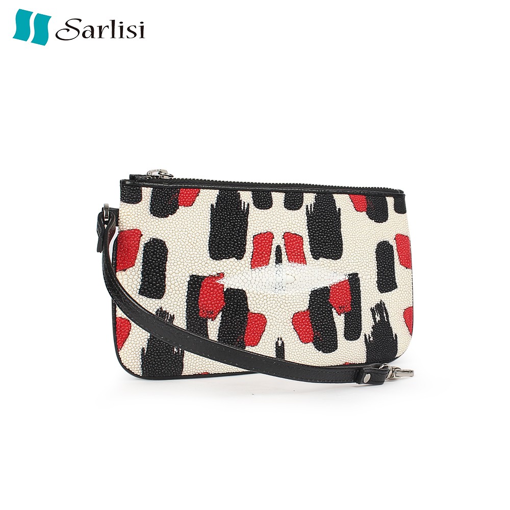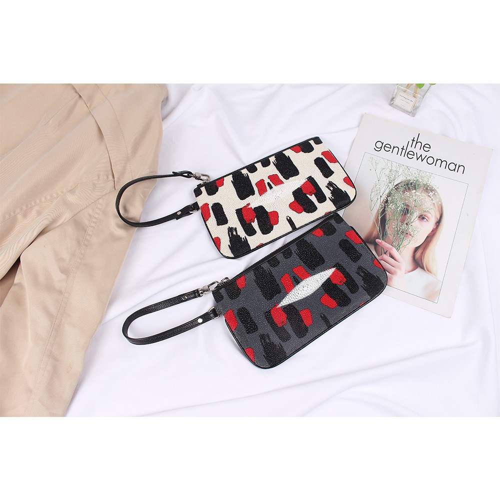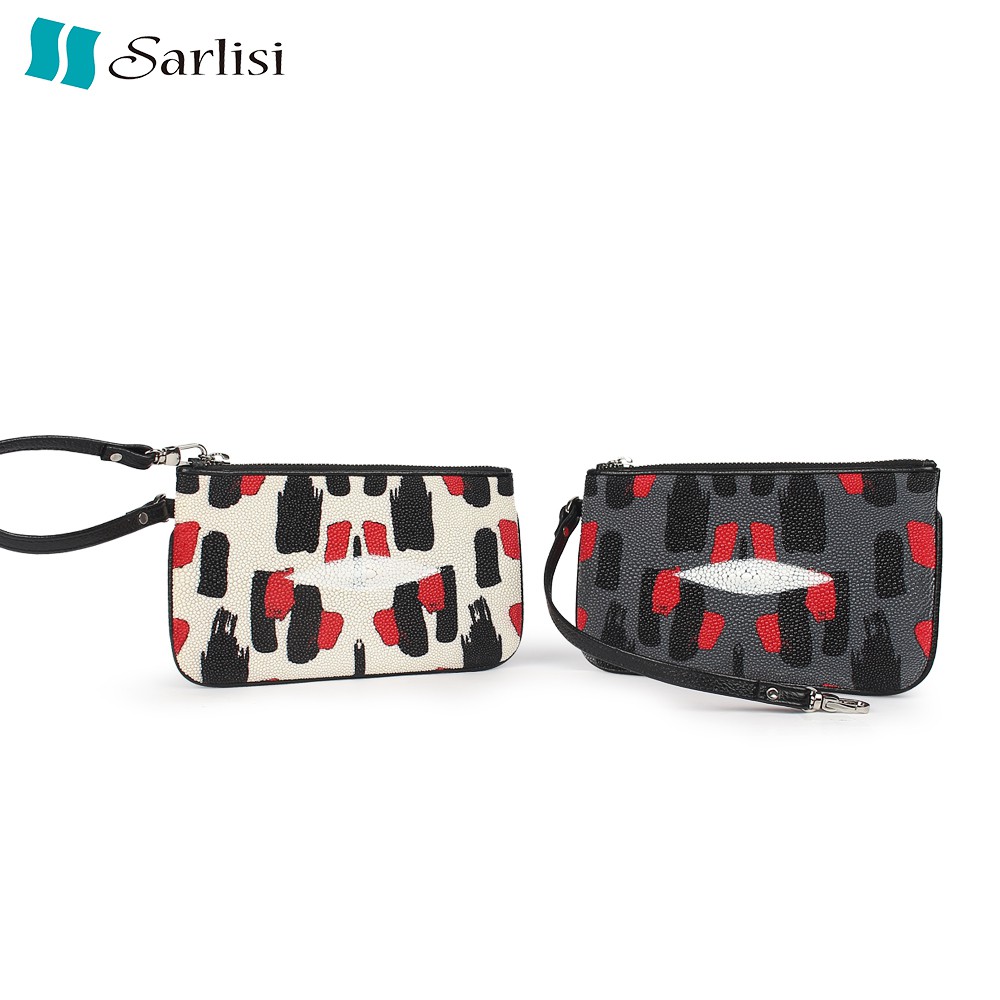 【Sarlisi 】虧本出清夏麗絲泰國新款真皮錢包女長款無拼接珍珠魚皮拉鍊小包時尚手拿包品牌專櫃女士長夾
