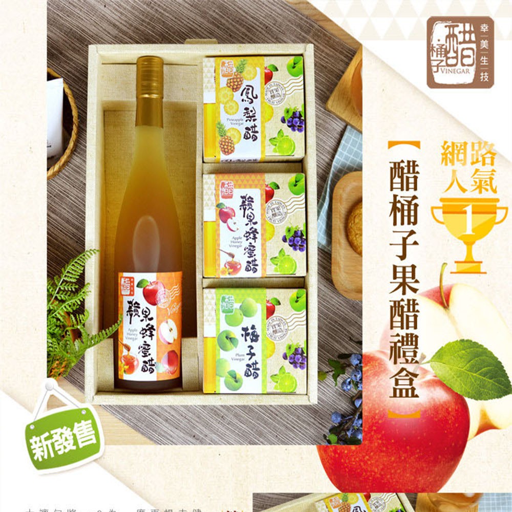 【醋桶子】幸福果醋4入禮盒組(600ml瓶裝醋1瓶+隨身包3盒)免運