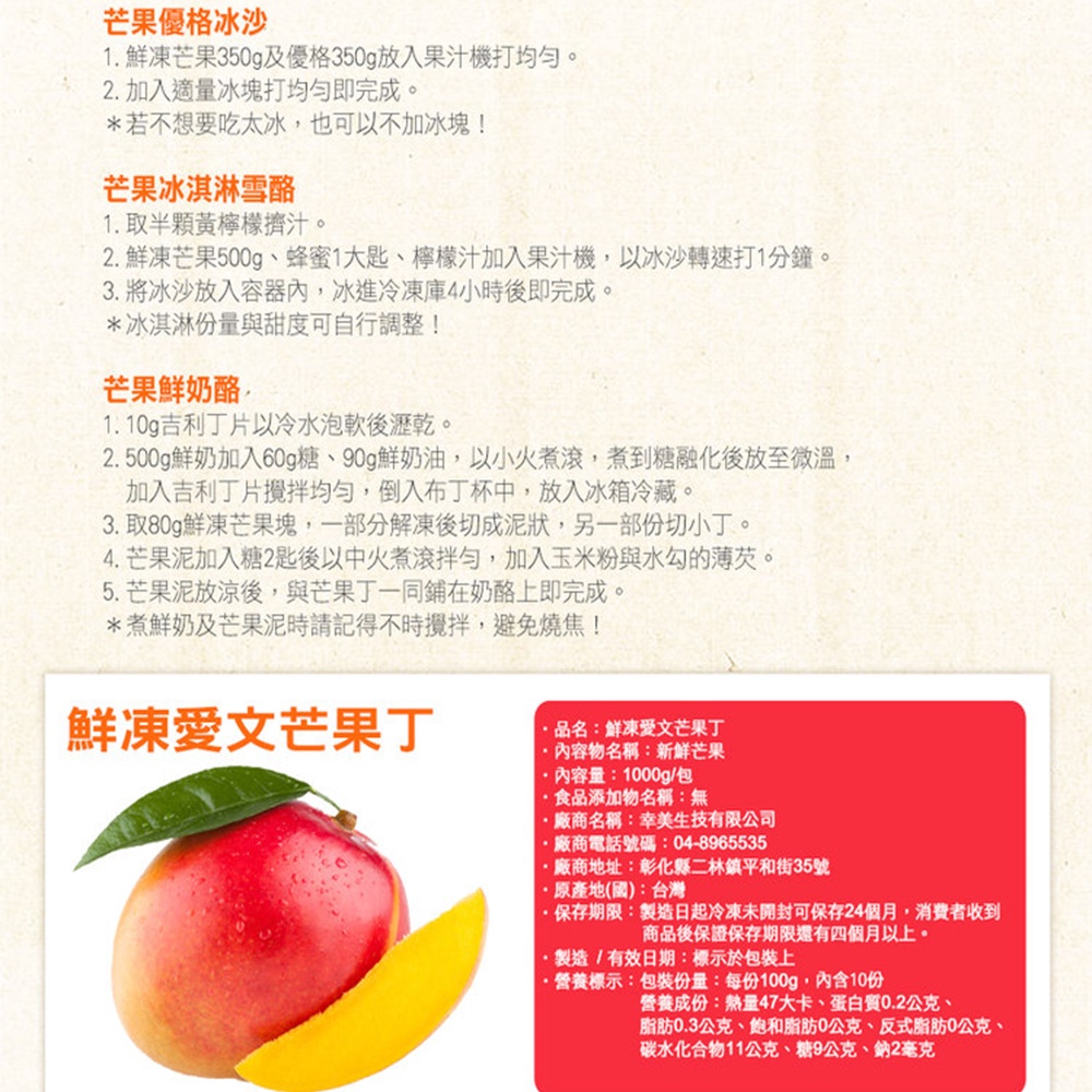 【外銷等級】【幸美生技】台灣冷凍愛文芒果塊5包組(1000g/包)廠商直送(超取限重9kg內)