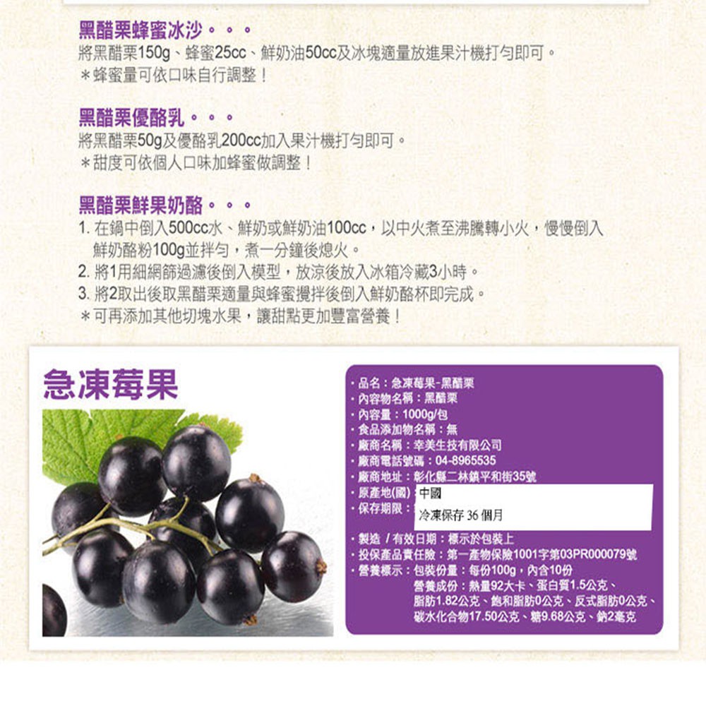 【幸美生技】冷凍黑醋栗 1公斤/包 (送驗通過 A肝/諾羅/農殘/重金屬)(超取限重9kg內)