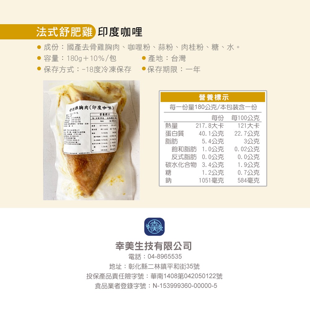 【現貨供應中】【幸美生技】法式舒肥雞-印度咖哩180g/包(超取限重9kg內)