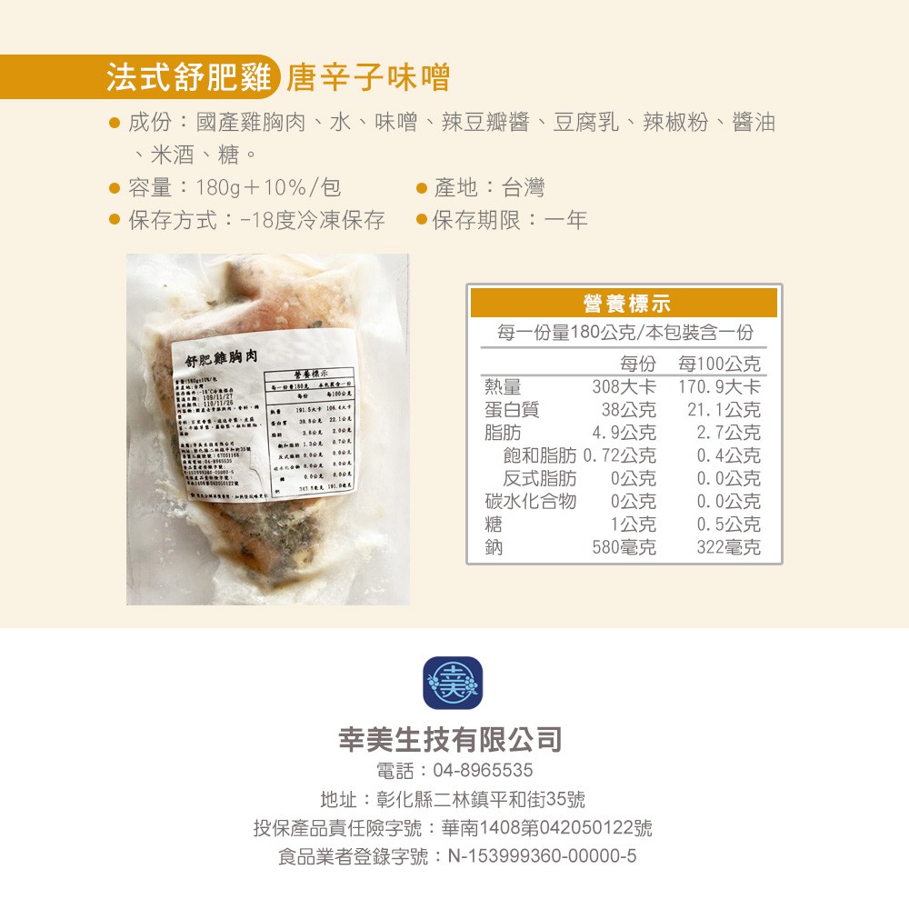 【幸美生技】法式舒肥雞-唐辛子味噌180g/包(超取限重9kg內)