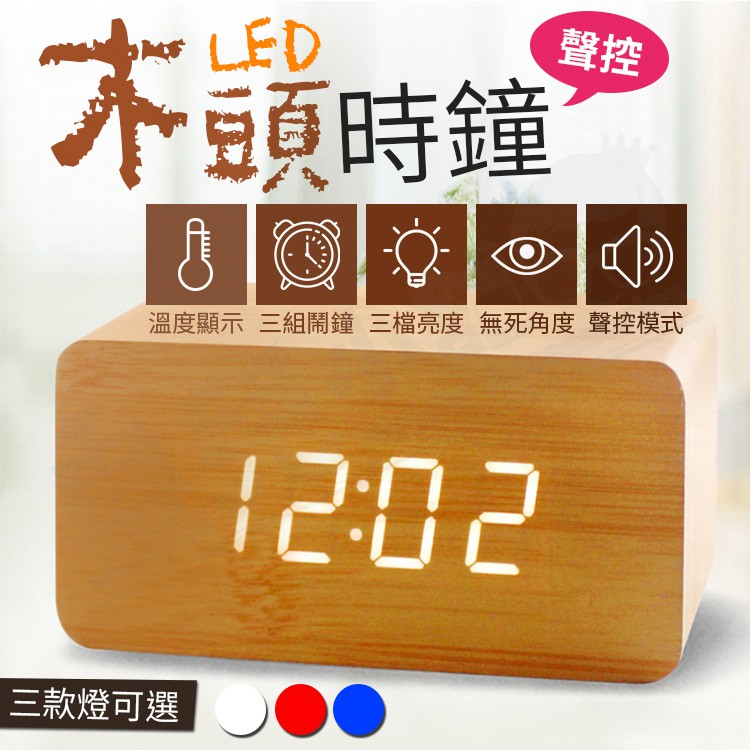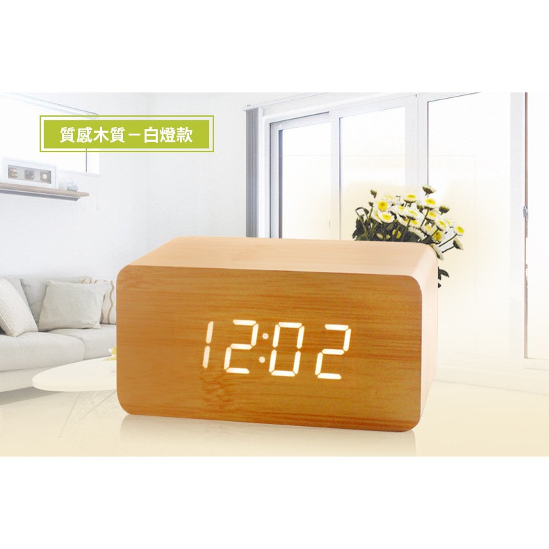 木質聲控鬧鐘 木頭時鐘 簡約時尚 電子鬧鐘 木質時鐘 日期 溫度 迷你鬧鐘 LED時鐘